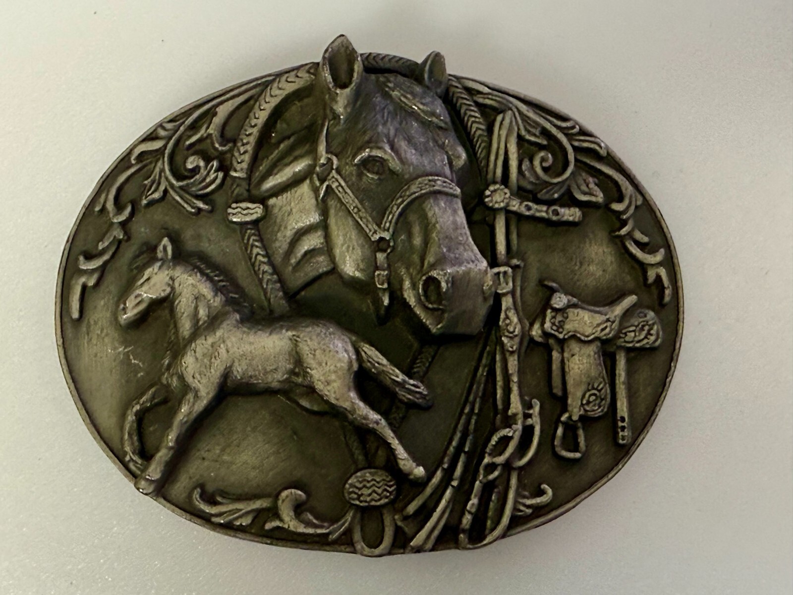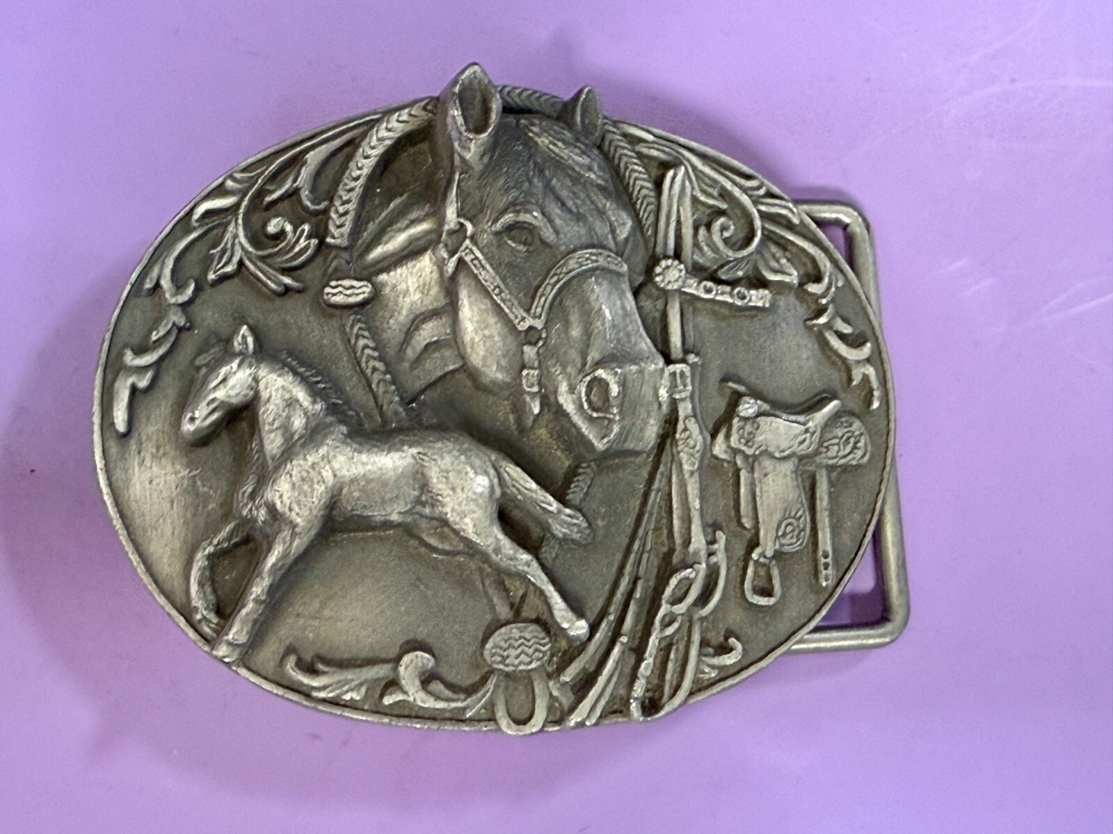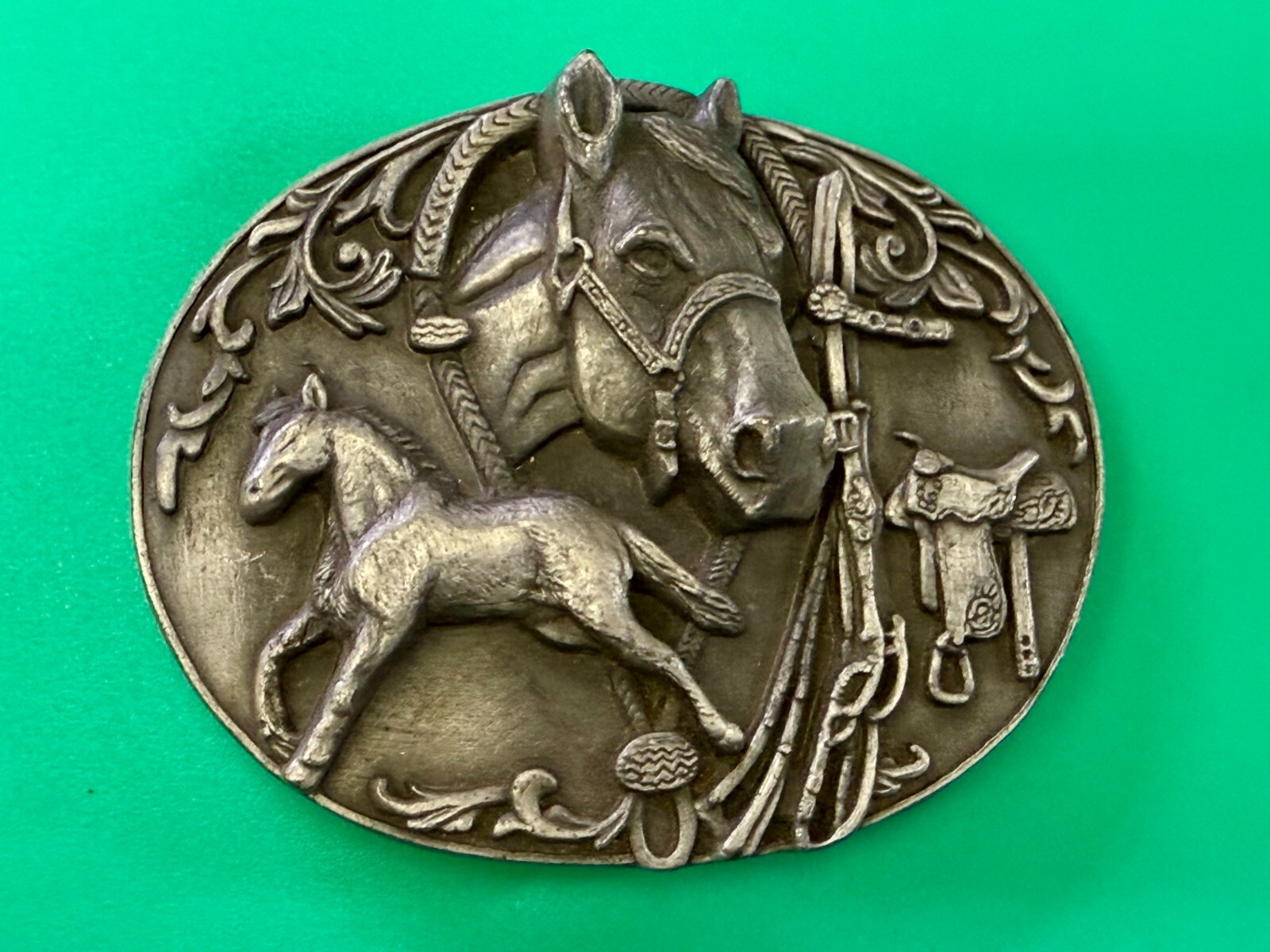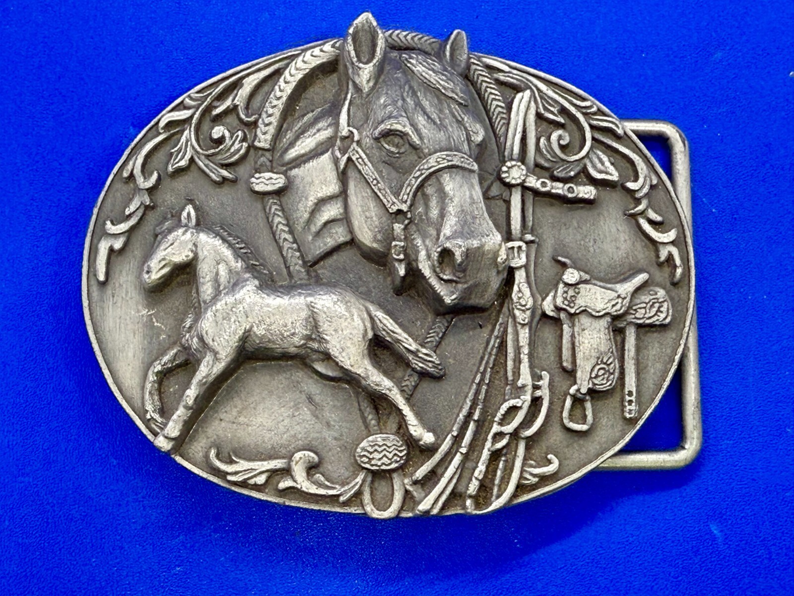 Horse Saddle Horseback Riding Rodeo Belt Buckle Vintage 1988 Siskiyou Gifts K-80