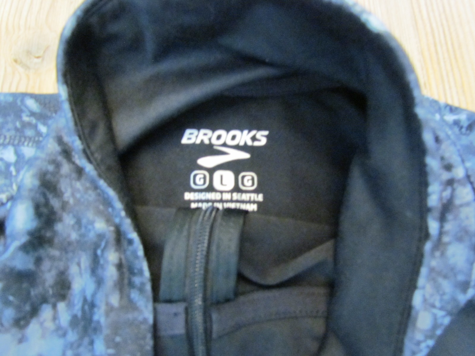 как выглядит EUC Brooks Womens Large L Black Gray Print Half-Zip Pullover Athletic Jacket фото