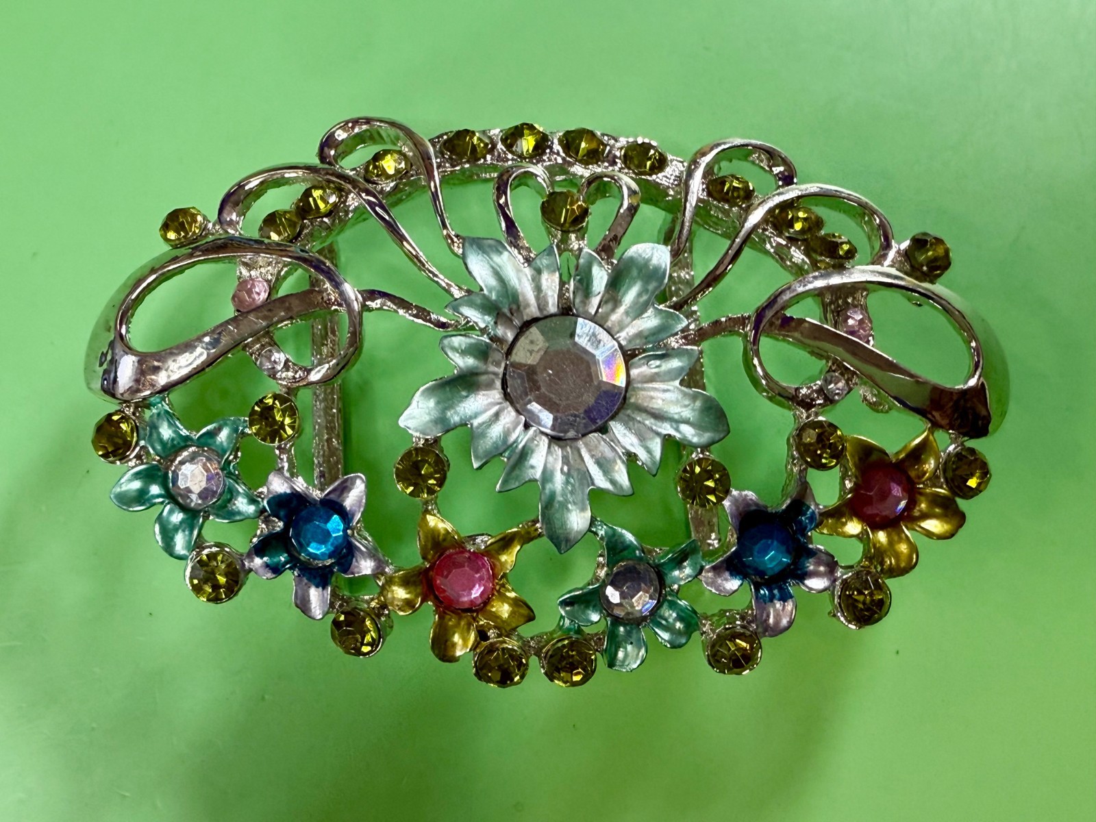 как выглядит Colorful Flower Burst Beautiful Rhinestones and enamel on Vintage Belt Buckle фото