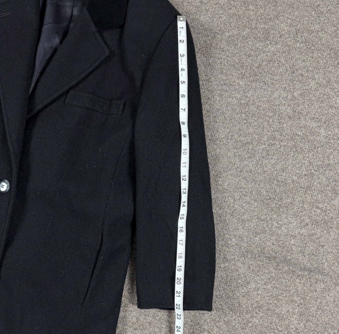 Vintage Black Wool Blend Long Button Front Overcoat Women s 12 Velour Collar USA