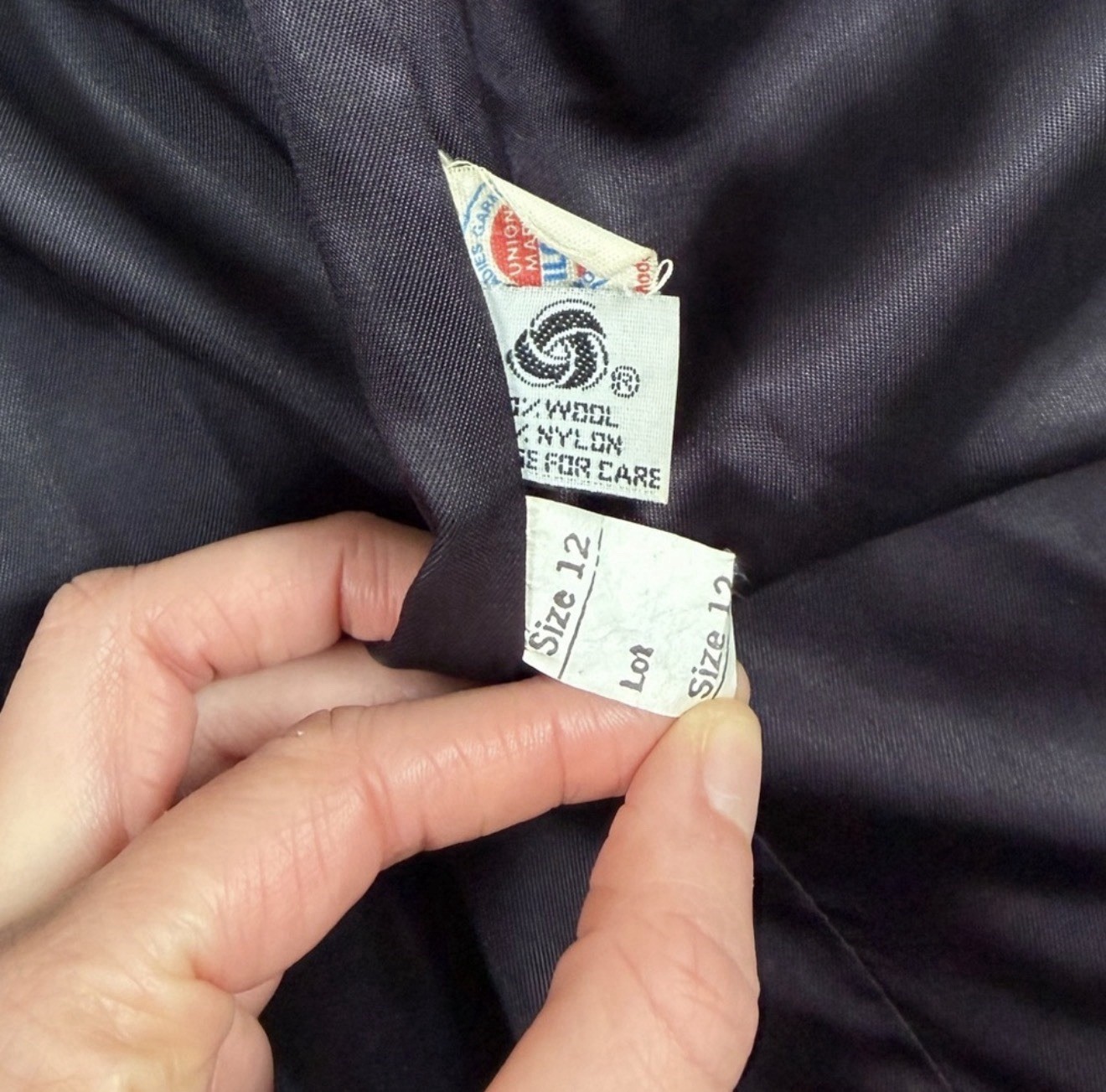 как выглядит Vintage Black Wool Blend Long Button Front Overcoat Women s 12 Velour Collar USA фото
