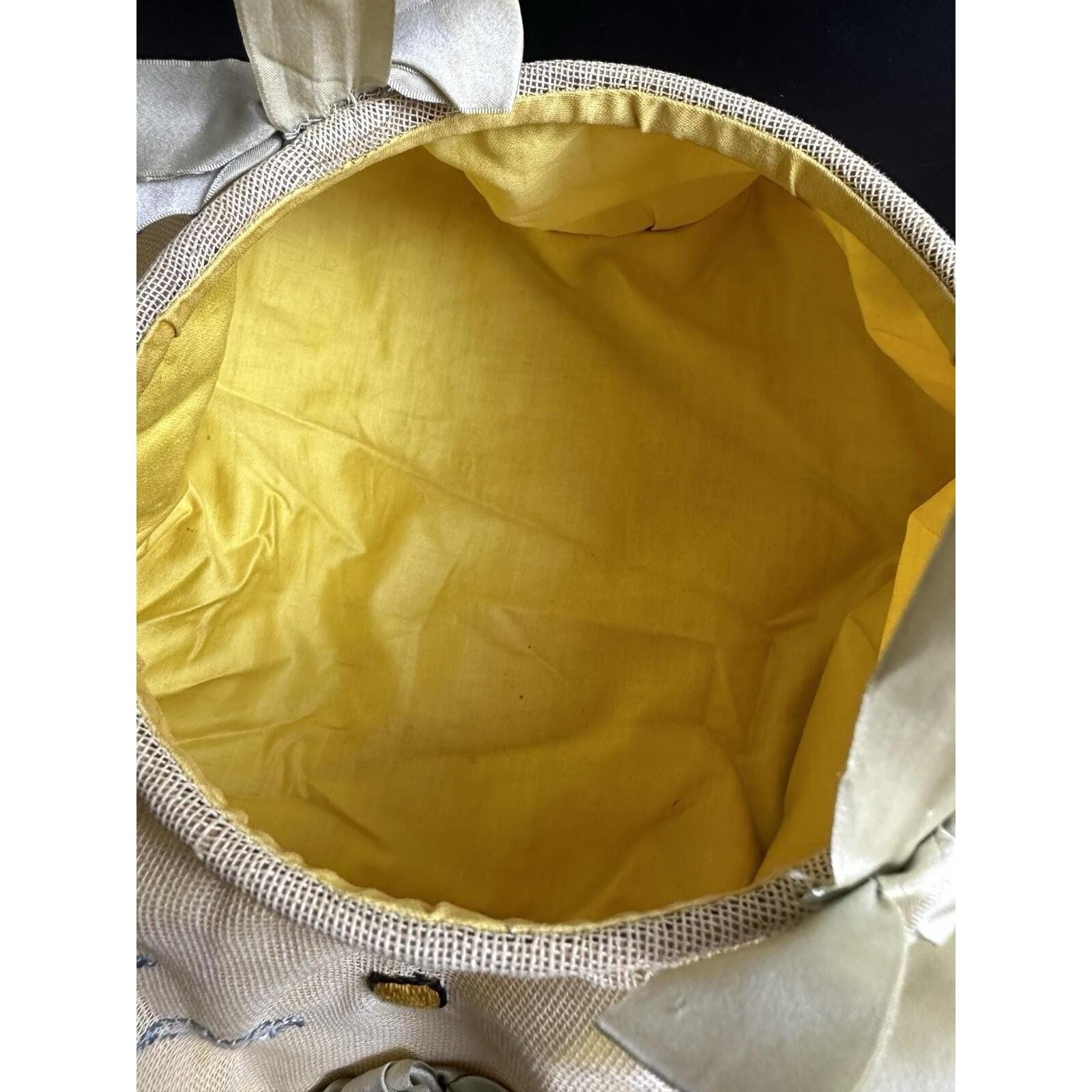 как выглядит Petit Point French Tapestry Drawstring Purse 1940s Pouch Handbag 15" Antique фото