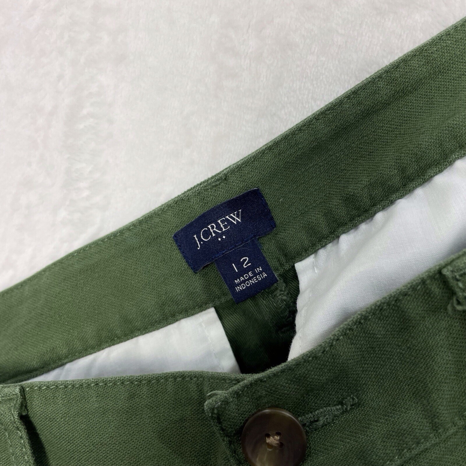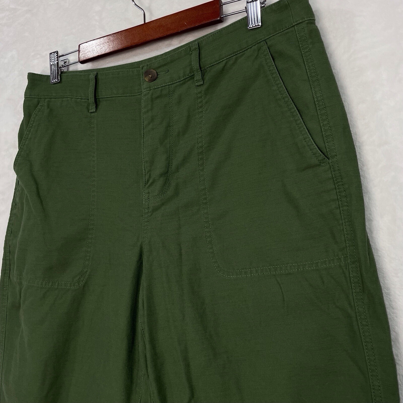 J Crew Women 12 Ankle Cropped Pants Mid Rise Classic Fit Olive Green Cotton MINT