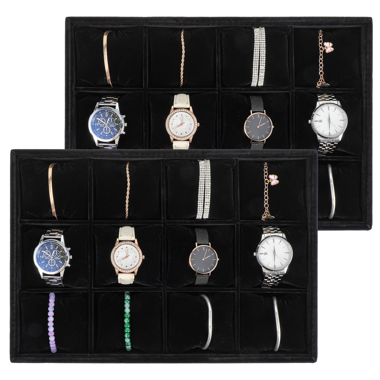 2 Pcs Velvet Watch Tray Jewelry Organizer, 12 Grid Stackable Velvet Watch Tra...