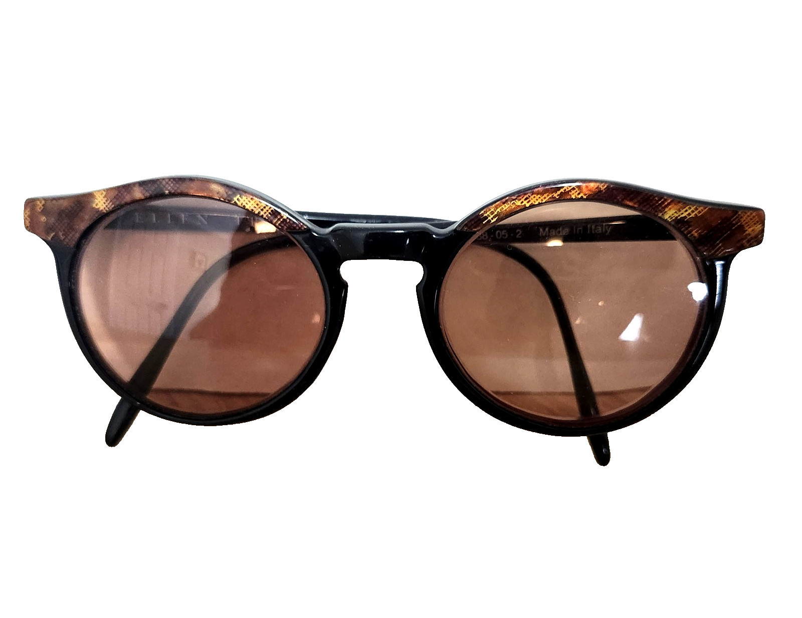 Vintage Ellen Tracy B88-05-2 Black Brown Round Sunglasses Frames made in Italy
