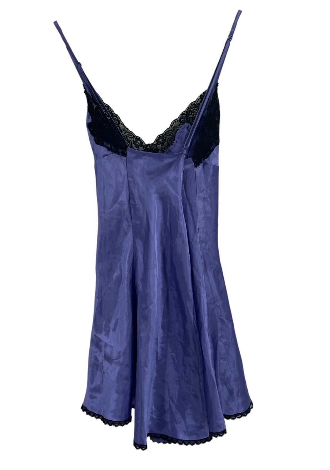 Fredericks Of Hollywood Purple Satin Black Lace Baby Doll Nightgown S Slip Dress