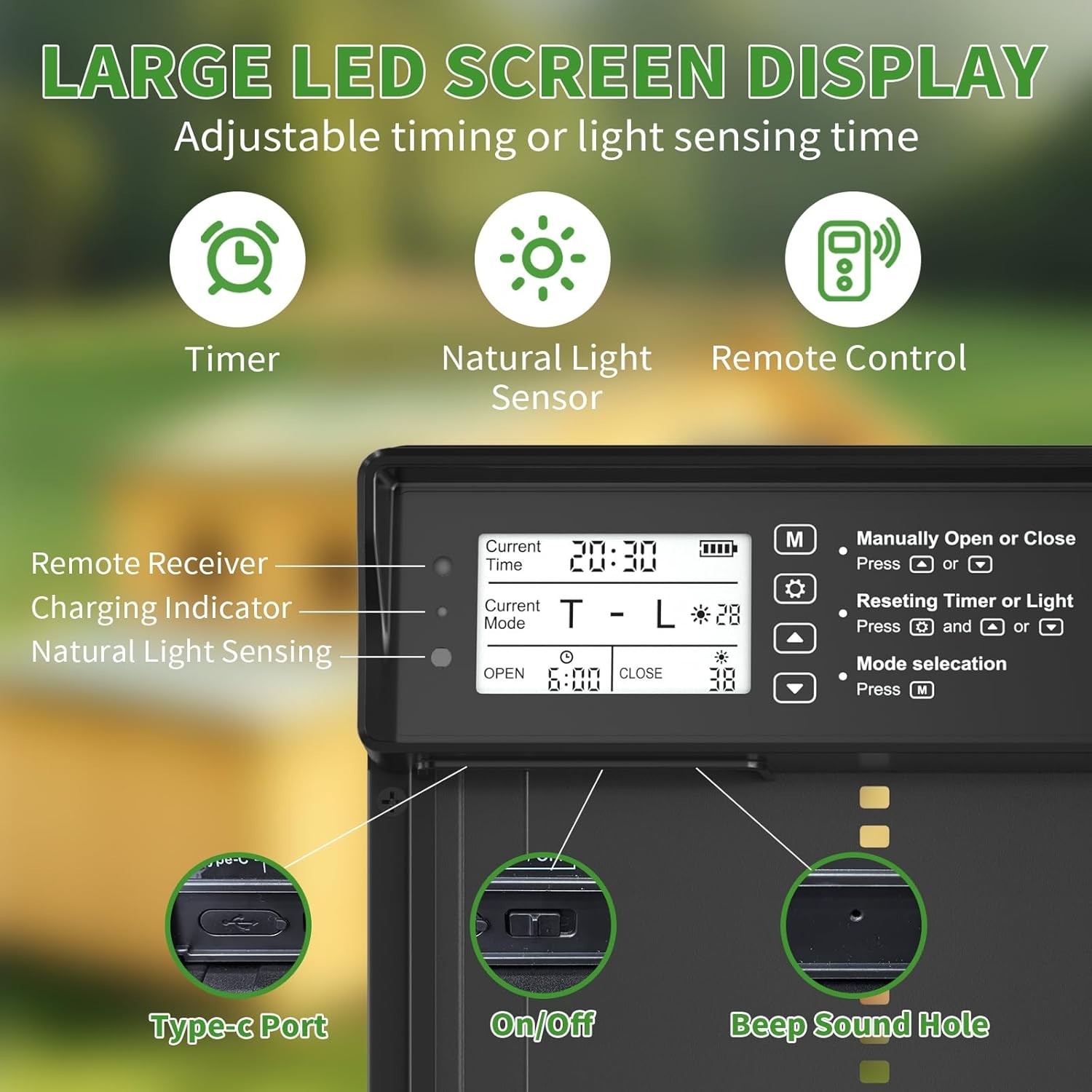 Automatic Chicken Coop Door Solar Powered with LCD Display, Automatic Chicken...