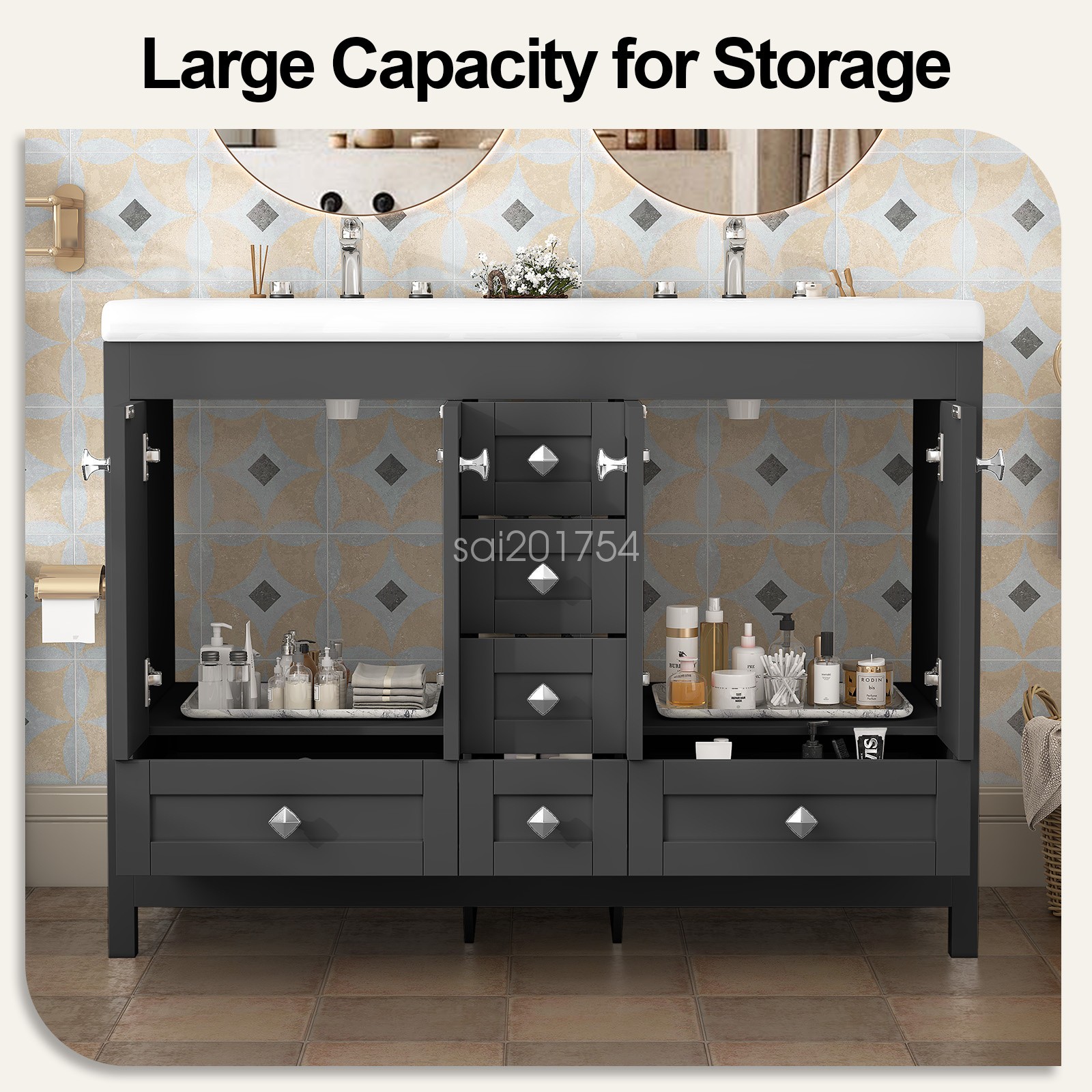 47'' Bathroom Vanity Double-Sink Ceramic Freestanding Cabinet Black
