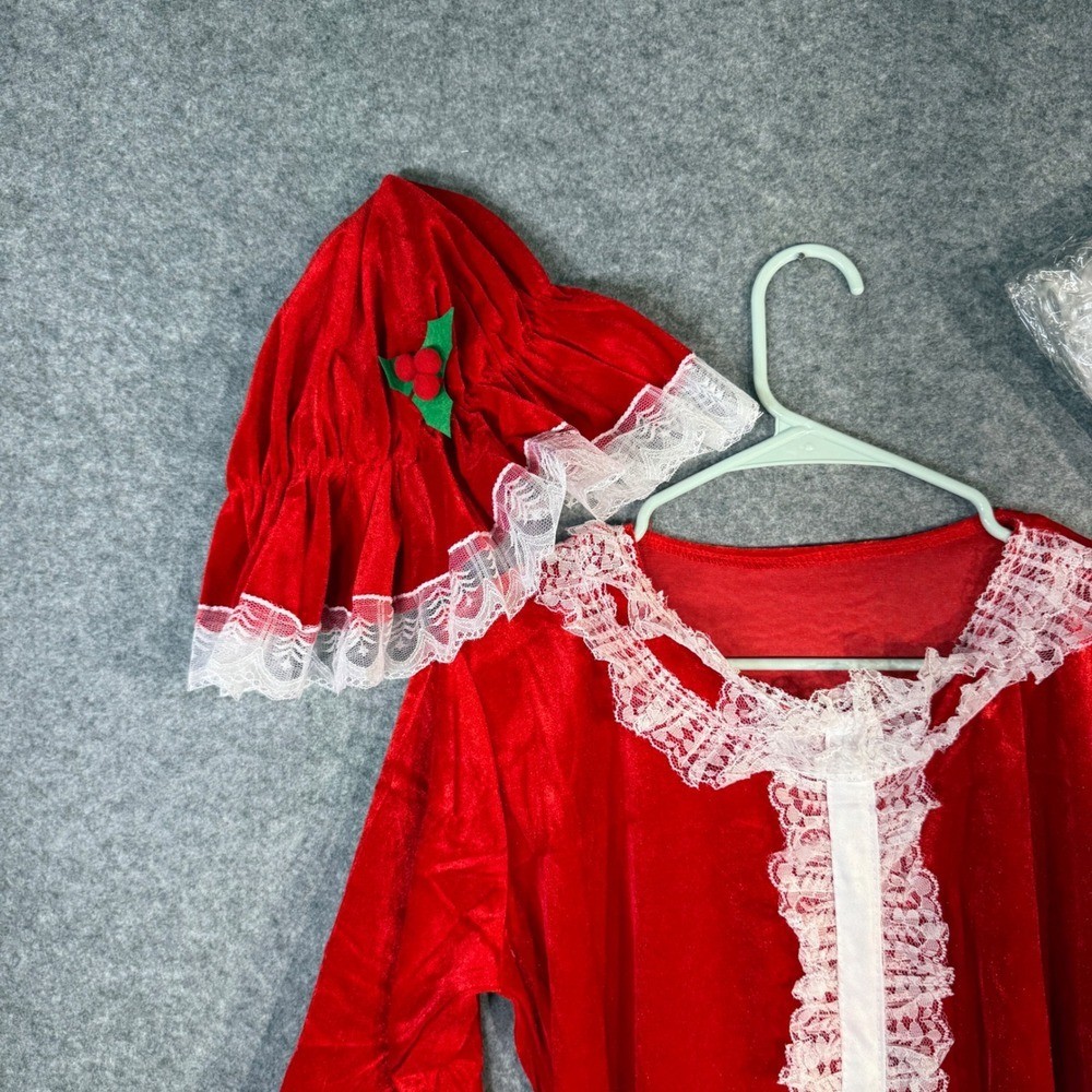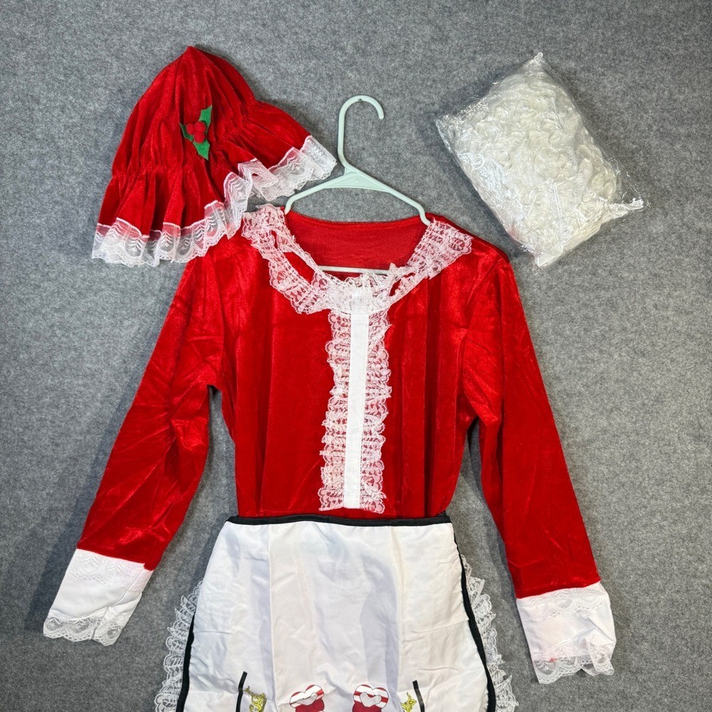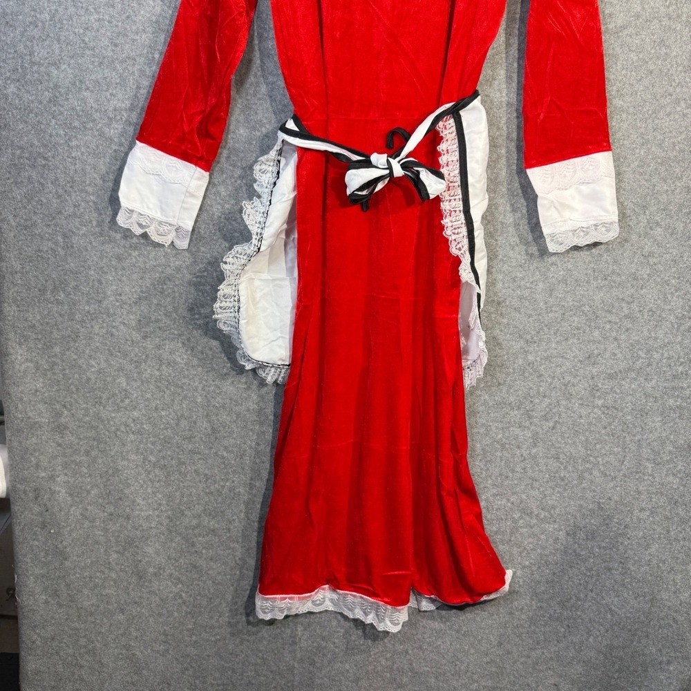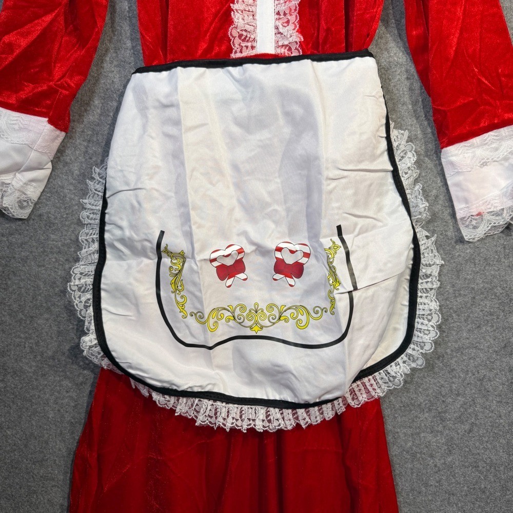 • Womens Red Christmas Santa Mrs Claus Costume Dress Apron Hat Set