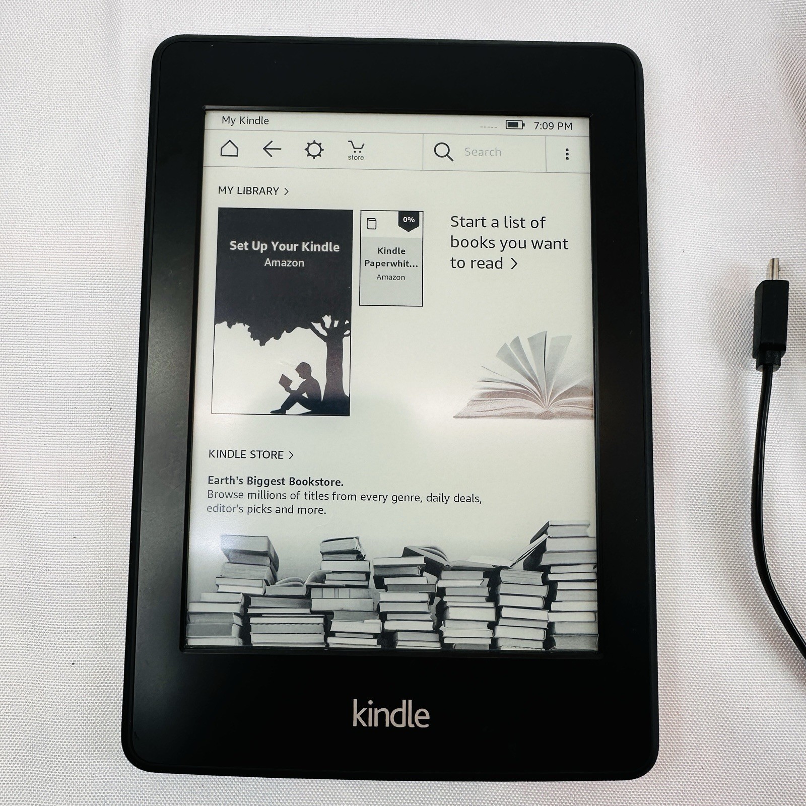 как выглядит Amazon Kindle Paperwhite 6th Gen DP75SDI 4GB Wi-Fi 6" Black Case Cord Bundle фото