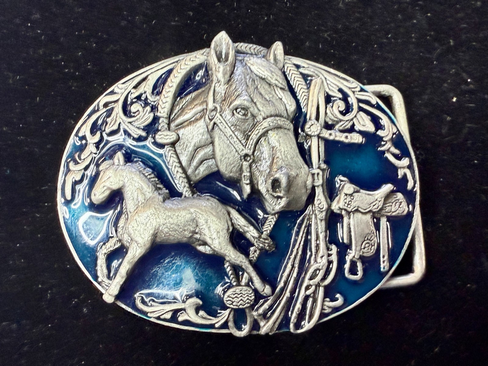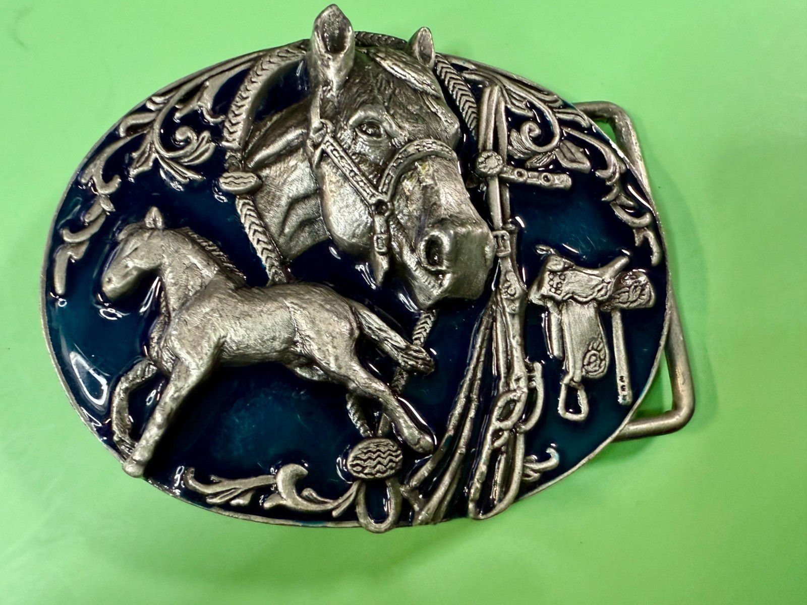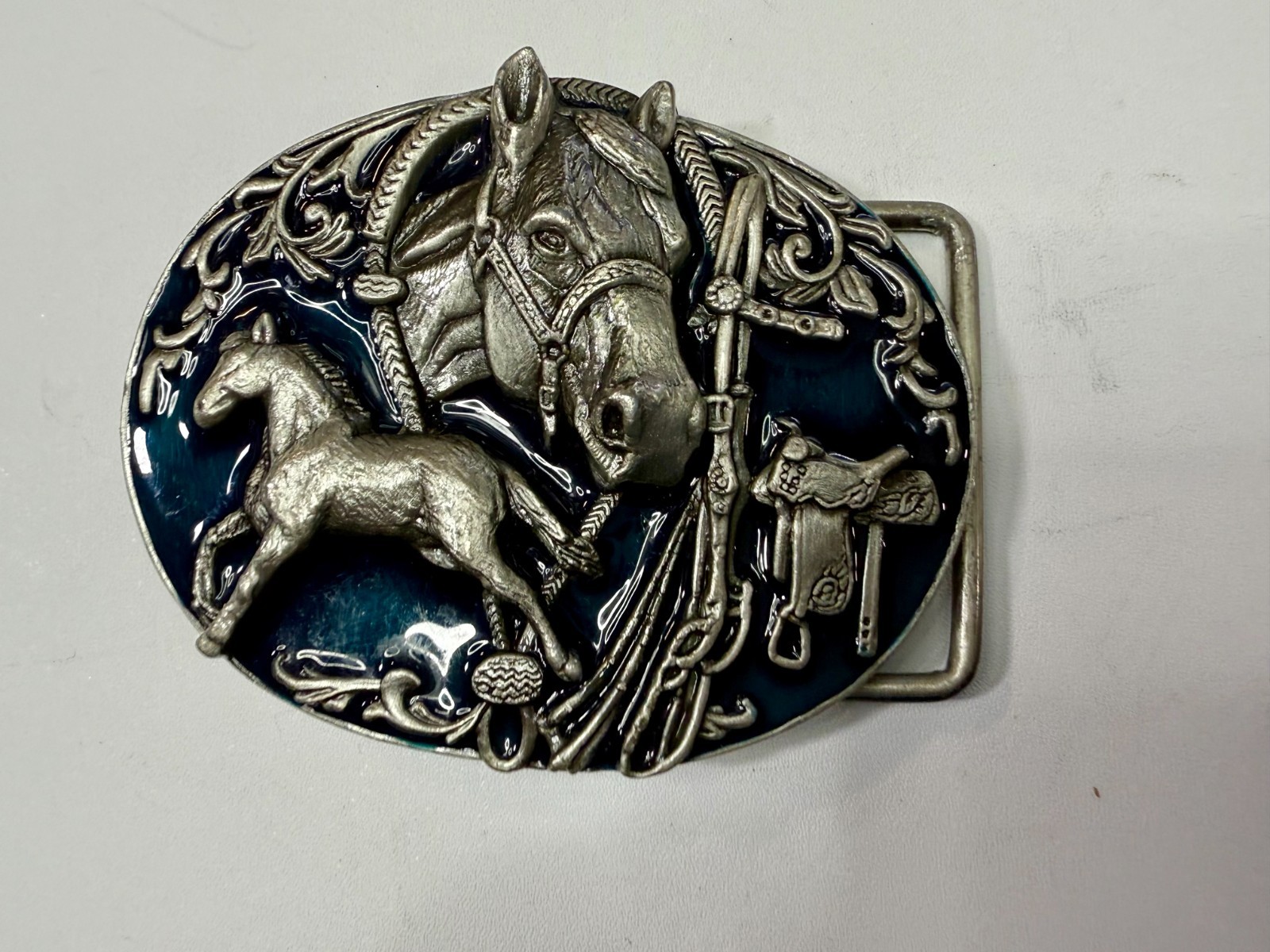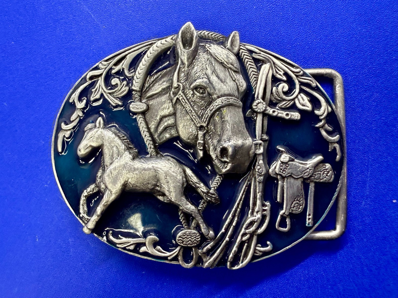 как выглядит Running Horse Head Saddle Western Cowboy Vintage 1988 Siskiyou Belt Buckle K-80 фото