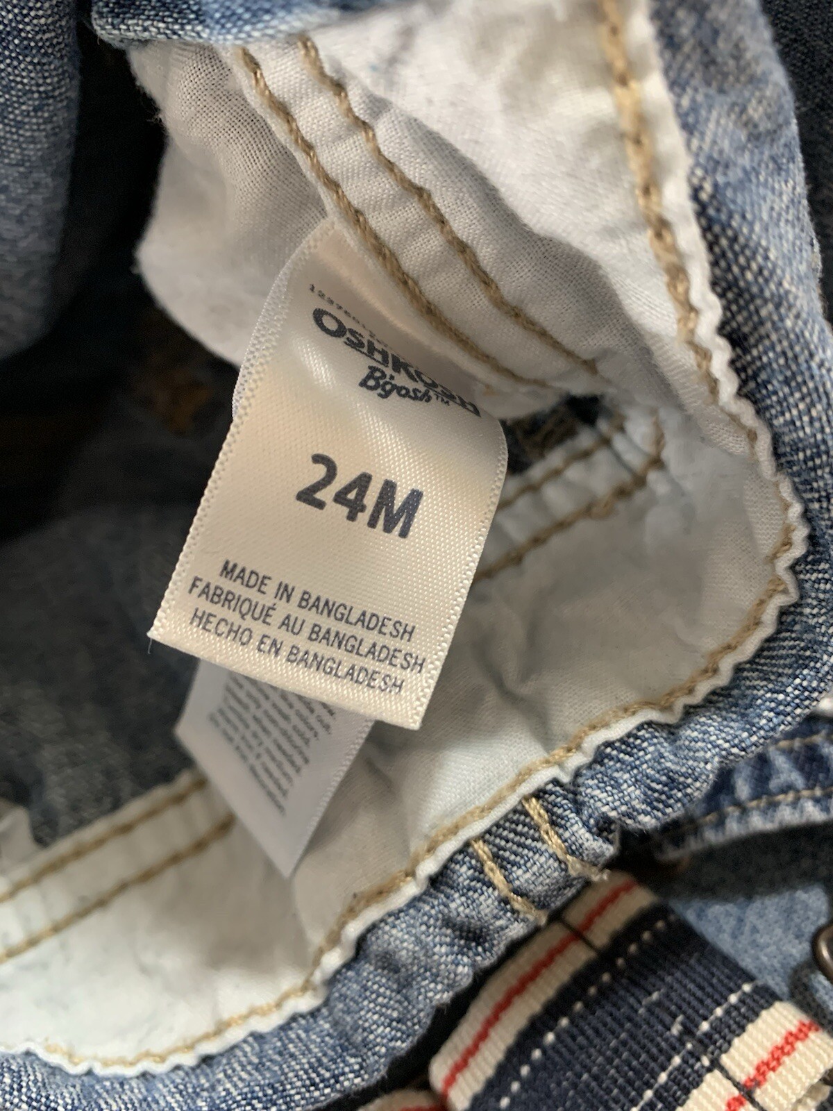 как выглядит OshKosh B gosh Boys Blue Jeans Vestbak Overalls Stripe Straps 24M 24 Months фото