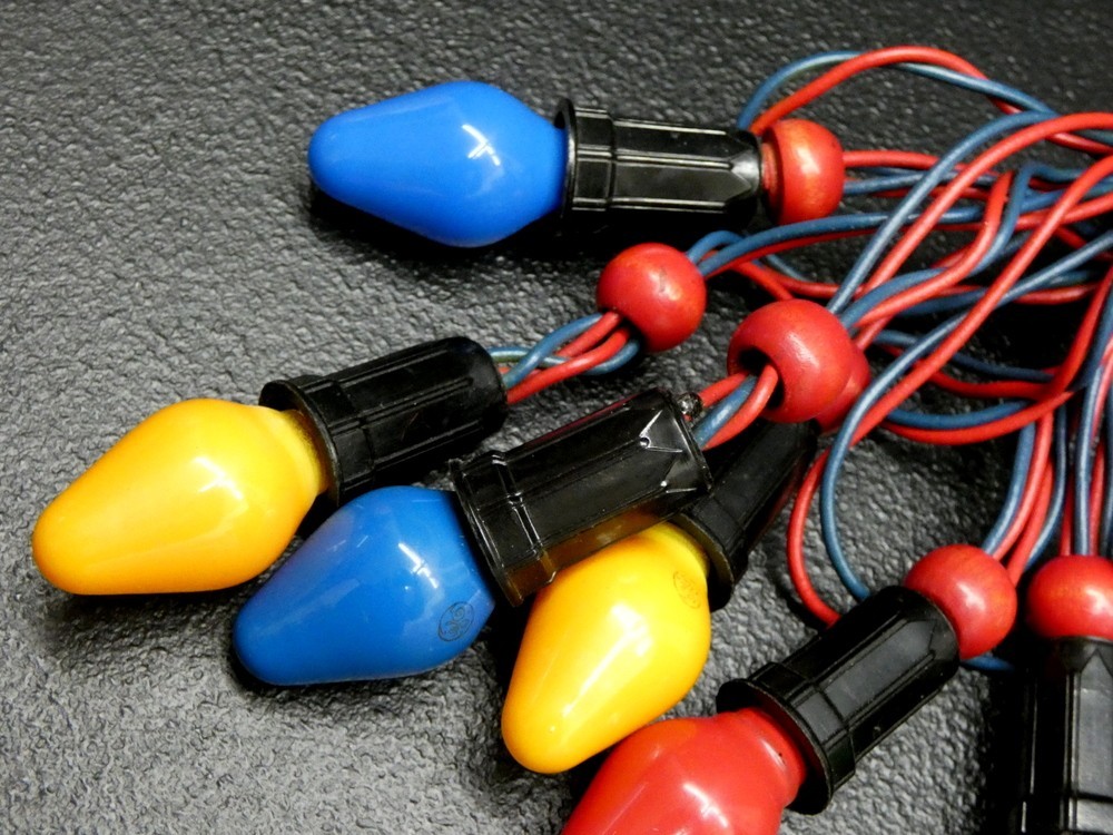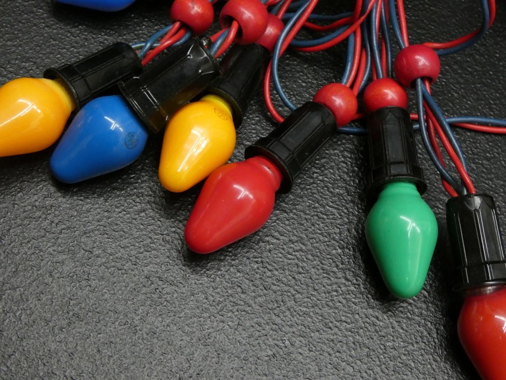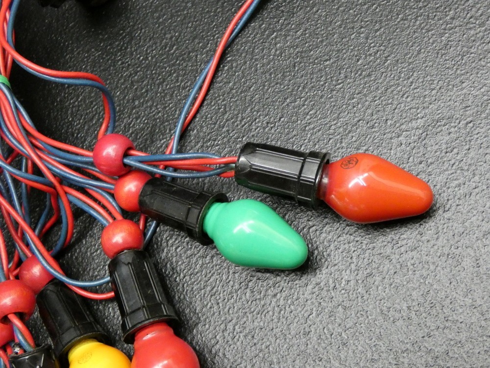 • Vintage Christmas Noma String Lights with Seven C7 Bulbs Wood Balls - Working
