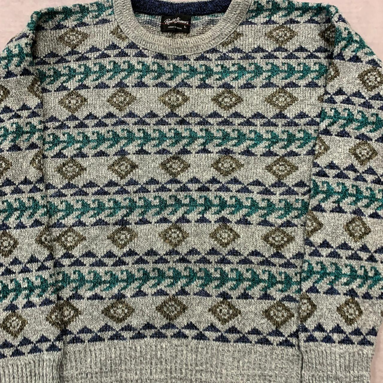 как выглядит Vintage abstract knitted jumper Patterned Grandad chunky knit sweater Mens L фото