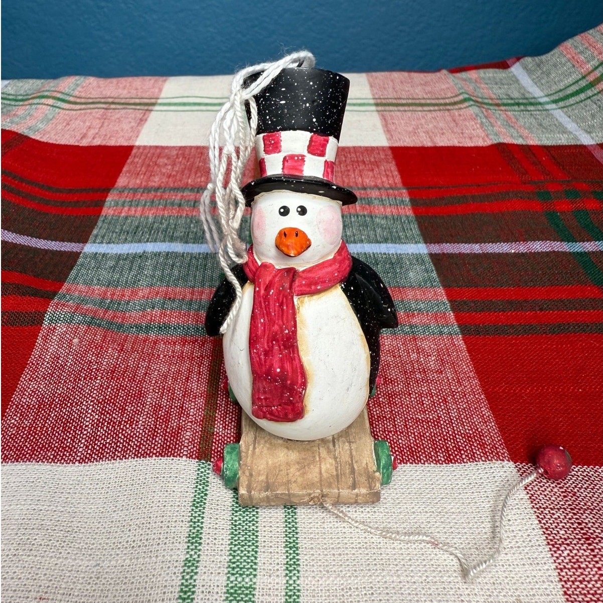 как выглядит Penguin in a Top Hat On A Pull Cart Ornament фото