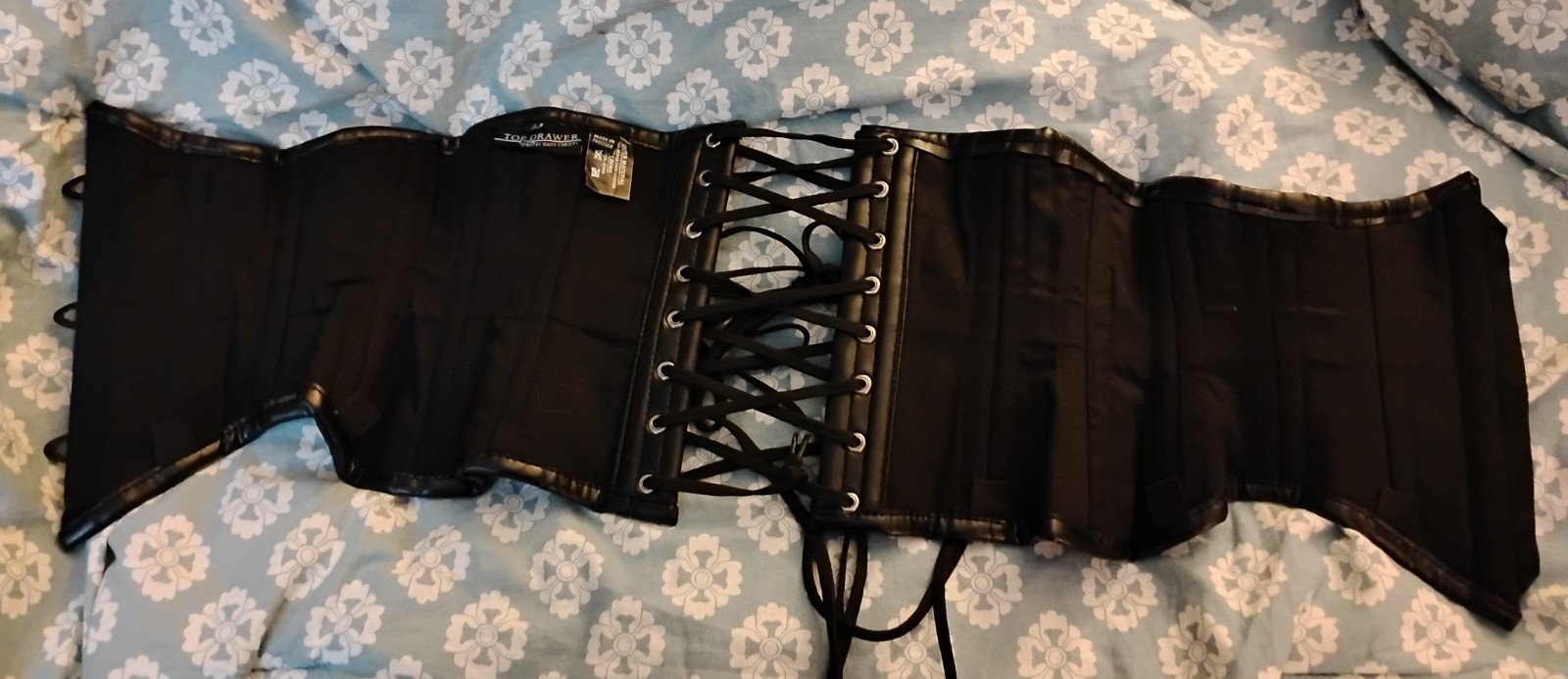 Top Drawer by Daisy Corsets Underbust Black Faux Leather Corset M Lace Up