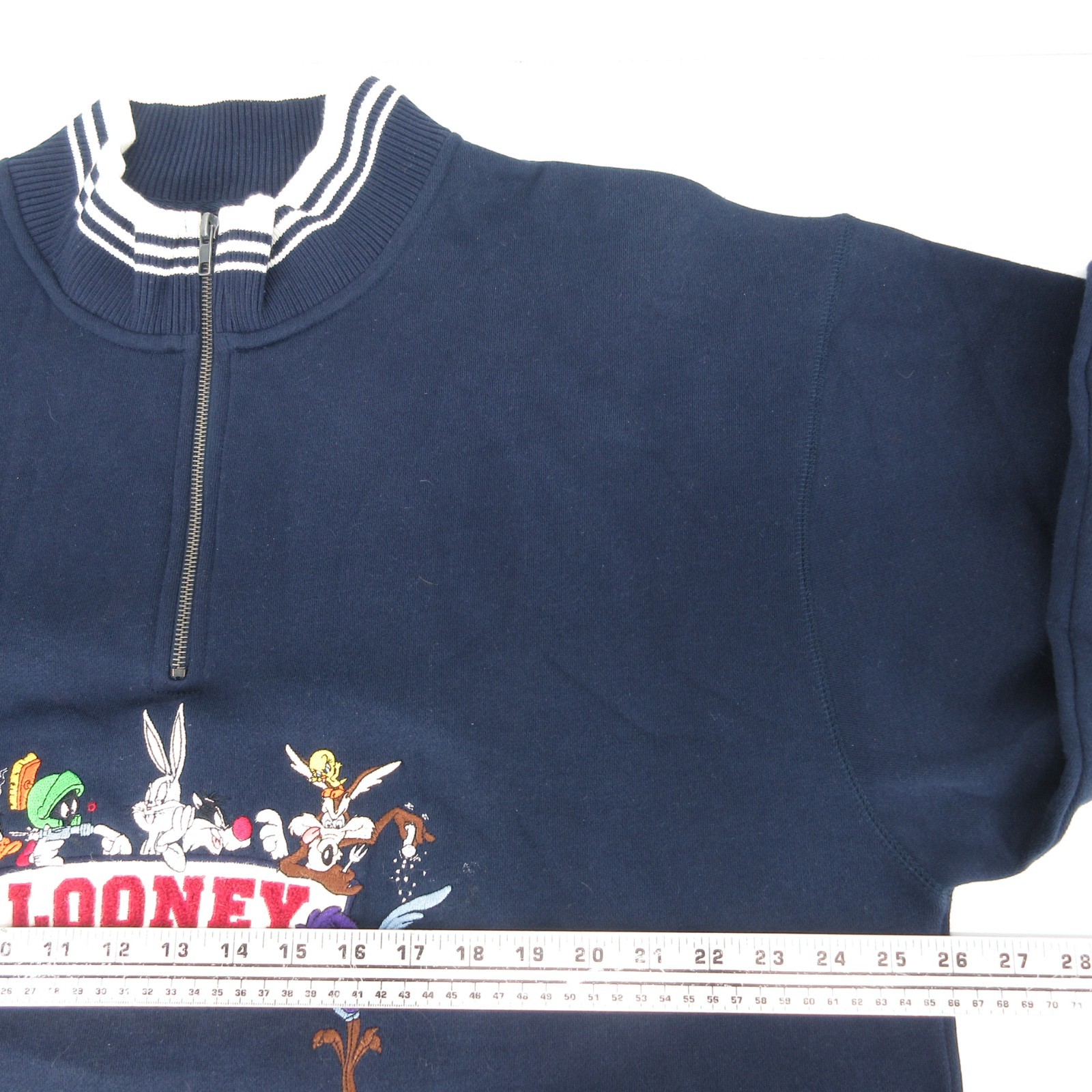 Vintage WB Studio Store Looney Tunes Embroidered 1/4 Zip Sweatshirt Size XL
