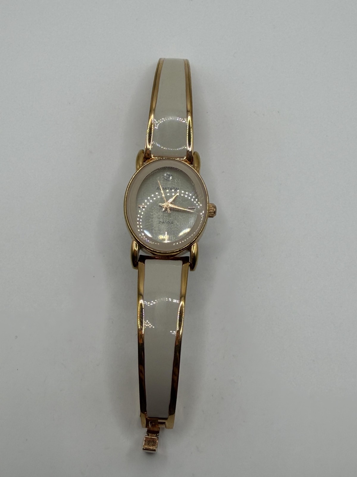 ARMITRON WATCH WOMENS DIAMOND ACCENT BANGLE GOLD TONE WHITE 75/5143RG JAPAN