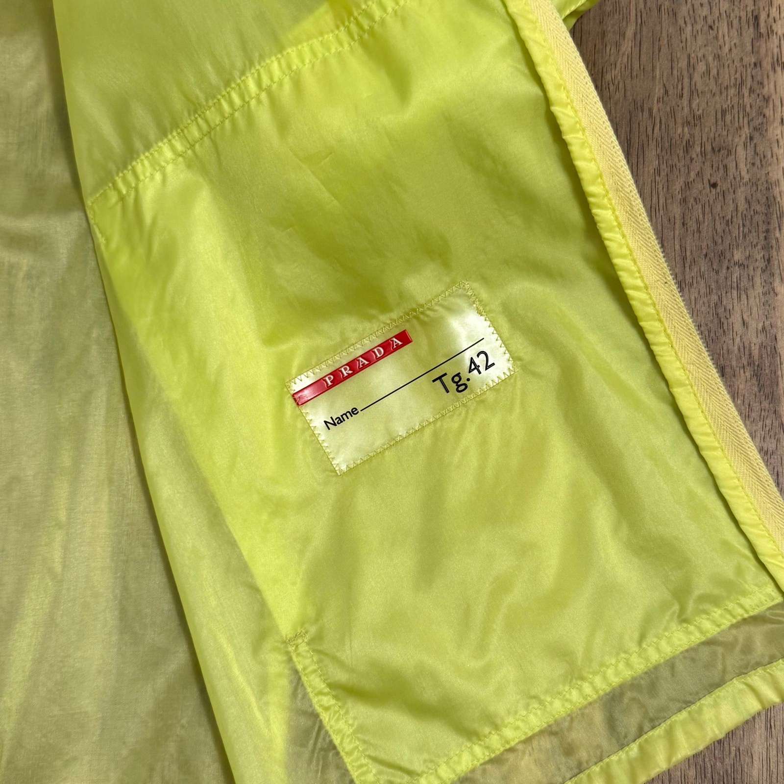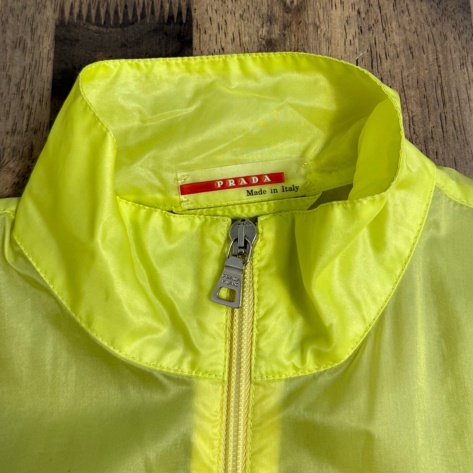 VTG 1999 PRADA Windbreaker Jacket Y2K Sheer Nylon Zip Neon Yellow Women s Medium
