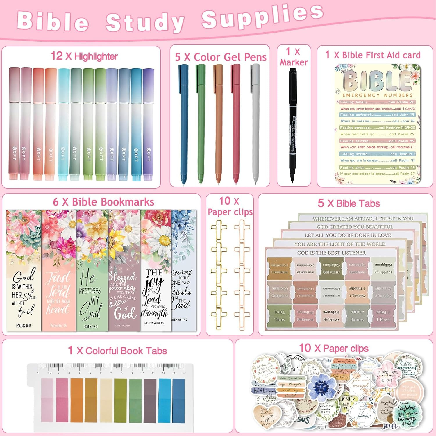 • Bible Study Supplies Journaling Kit for Women,Pastel Highlighters Pens, Bible