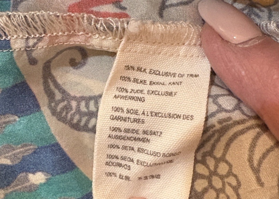 как выглядит Johnny Was Multi Color Mixed Media Floral Long Sleeve 100 Silk Blouse Size S фото