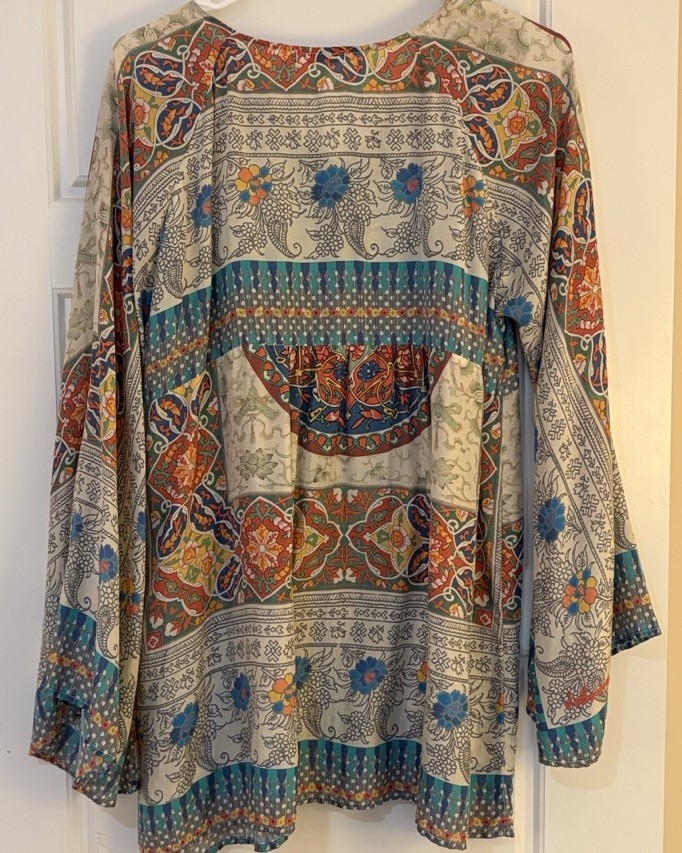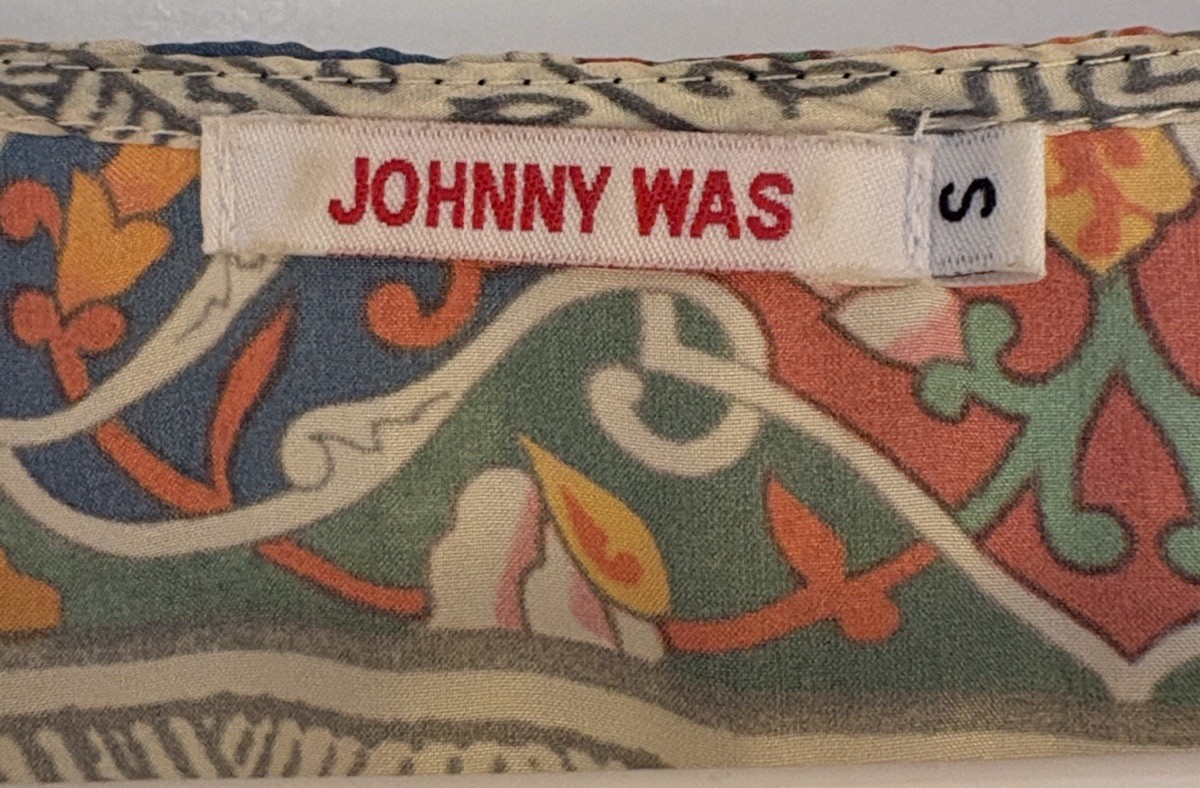 Johnny Was Multi Color Mixed Media Floral Long Sleeve 100 Silk Blouse Size S