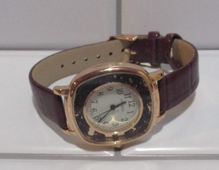 как выглядит STRADA Watch Womens Faux Leather Purple Band Stainless Steel Original Box фото