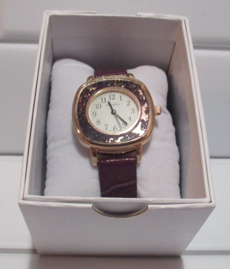 STRADA Watch Womens Faux Leather Purple Band Stainless Steel Original Box