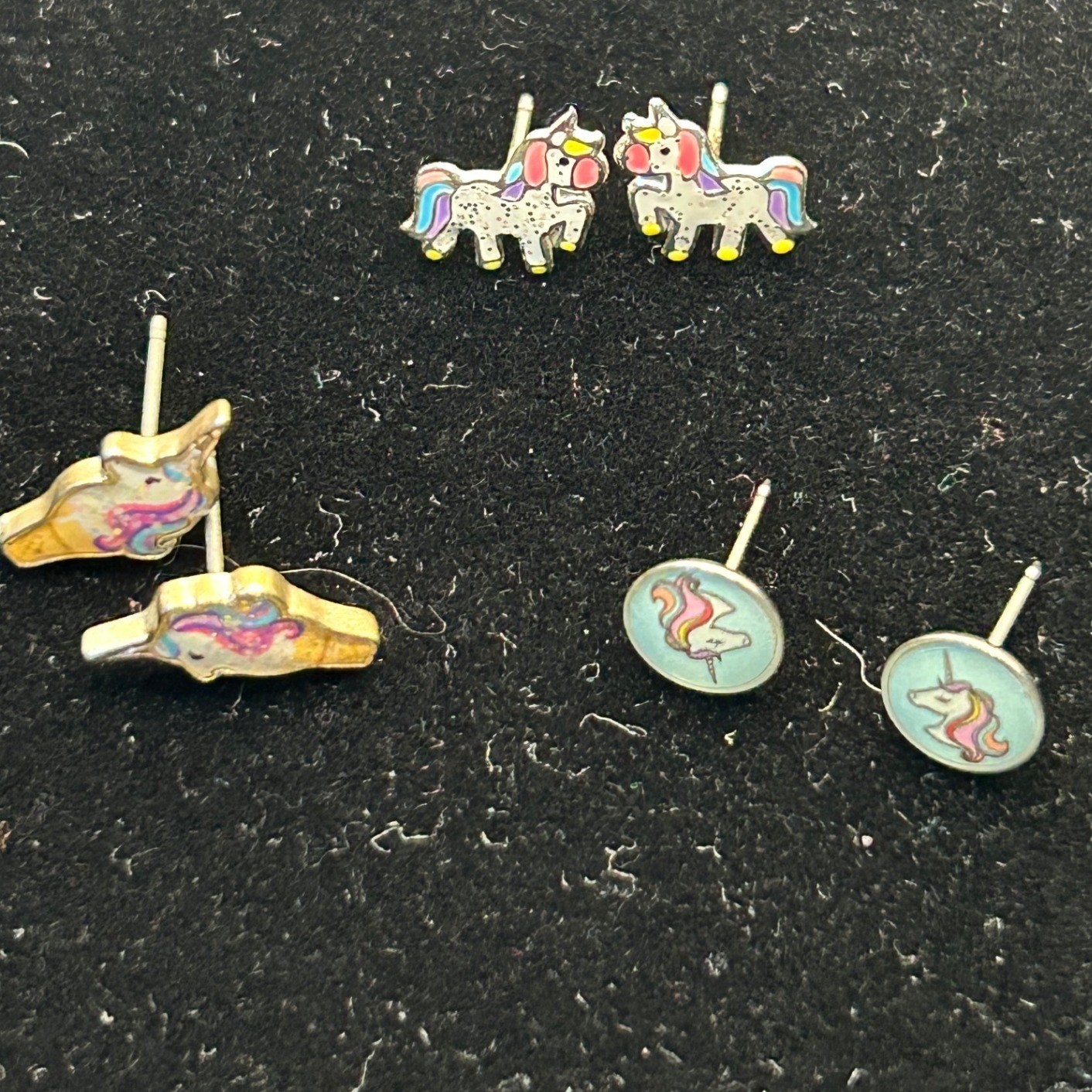 Unicorn Stud Earrings Set Silver Tone Enamel 3 Pairs Tiny Dainty Fun Fantasy