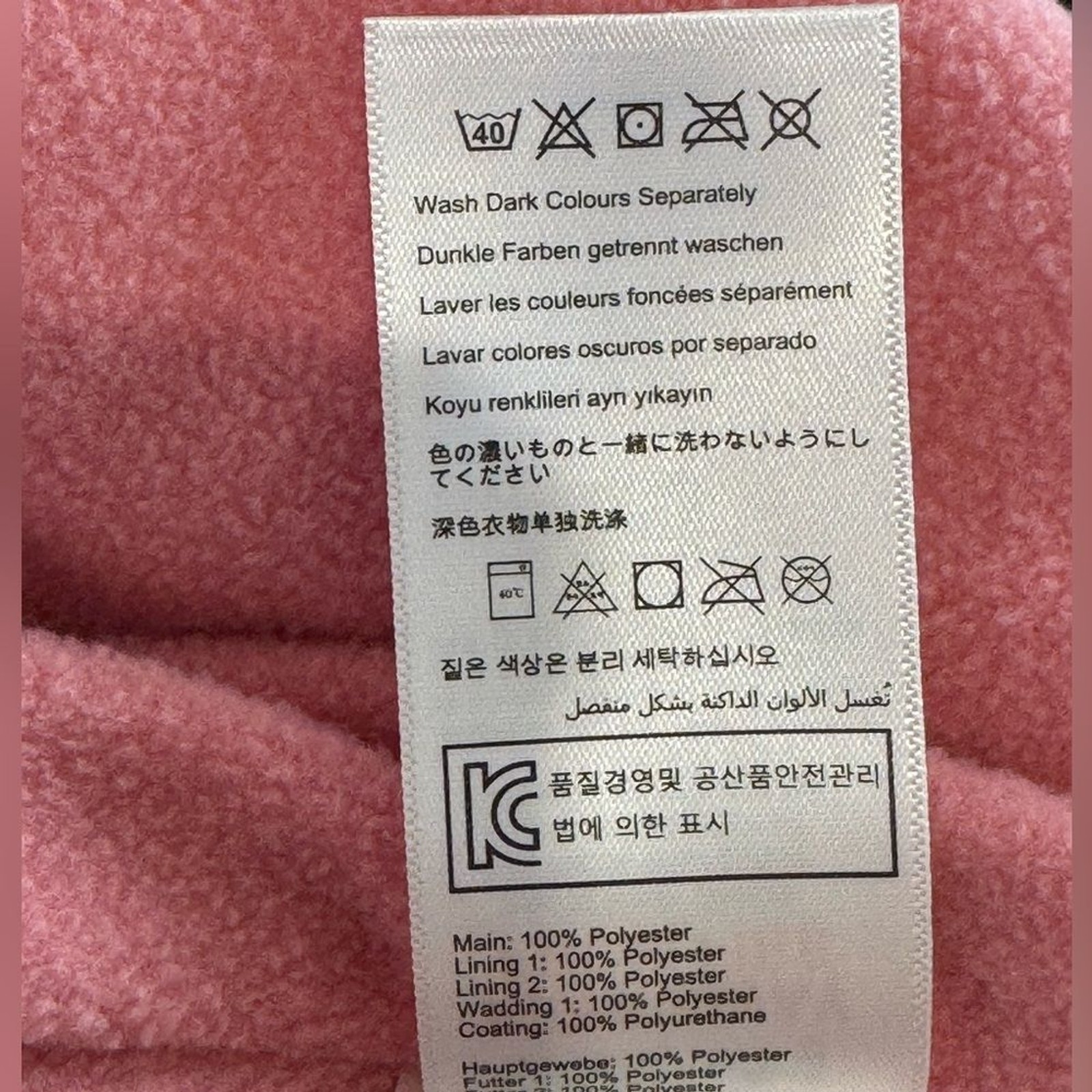 Outer Shell Material: 100% Polyester