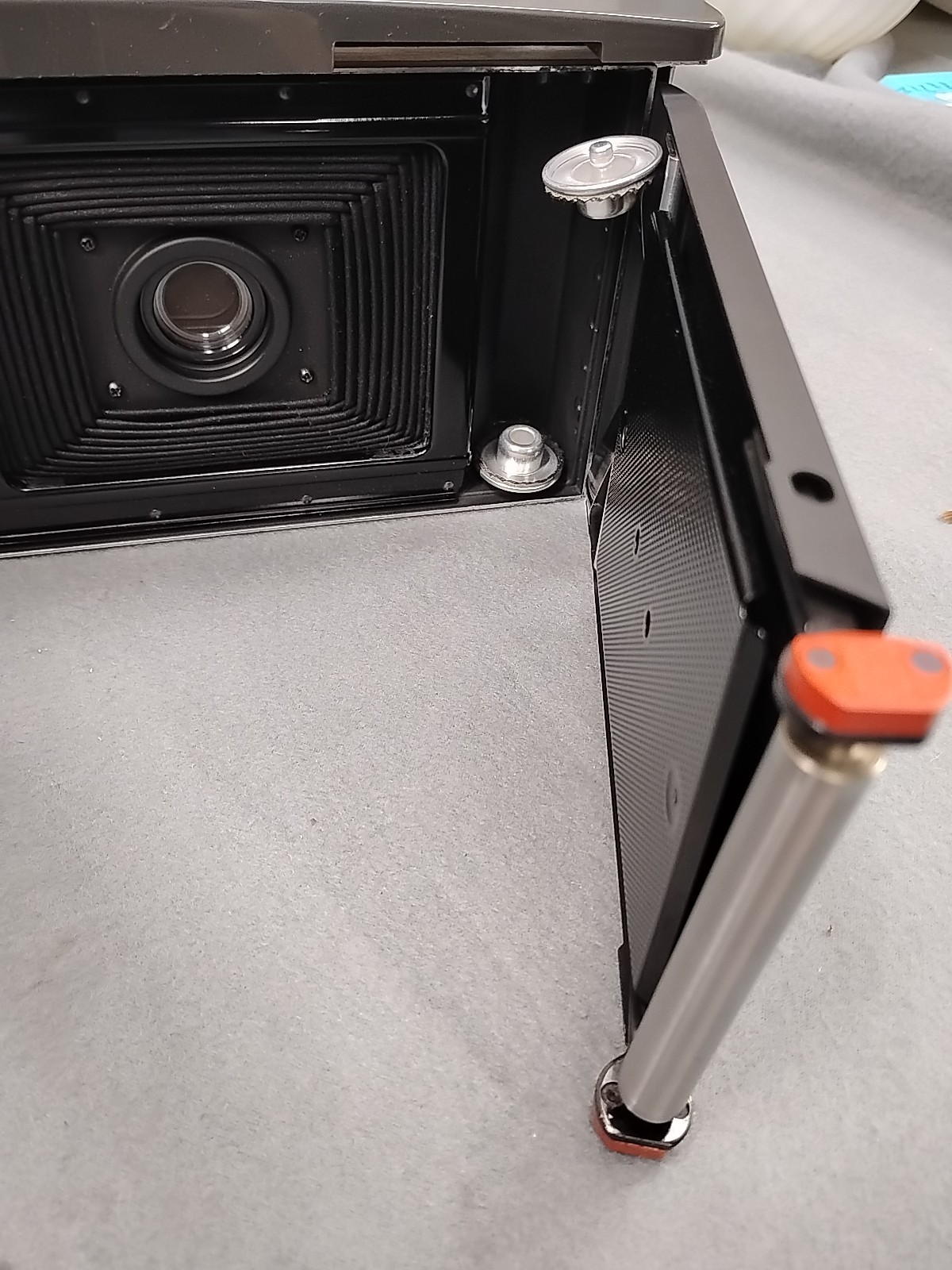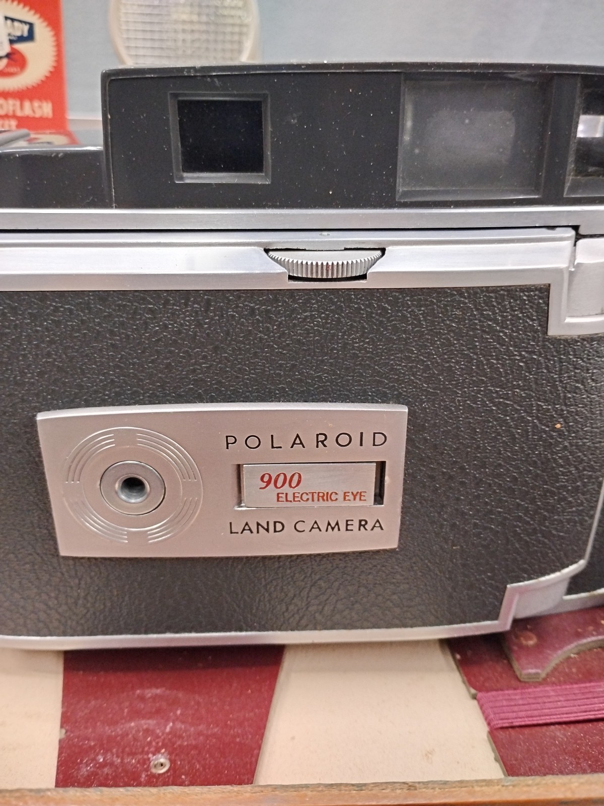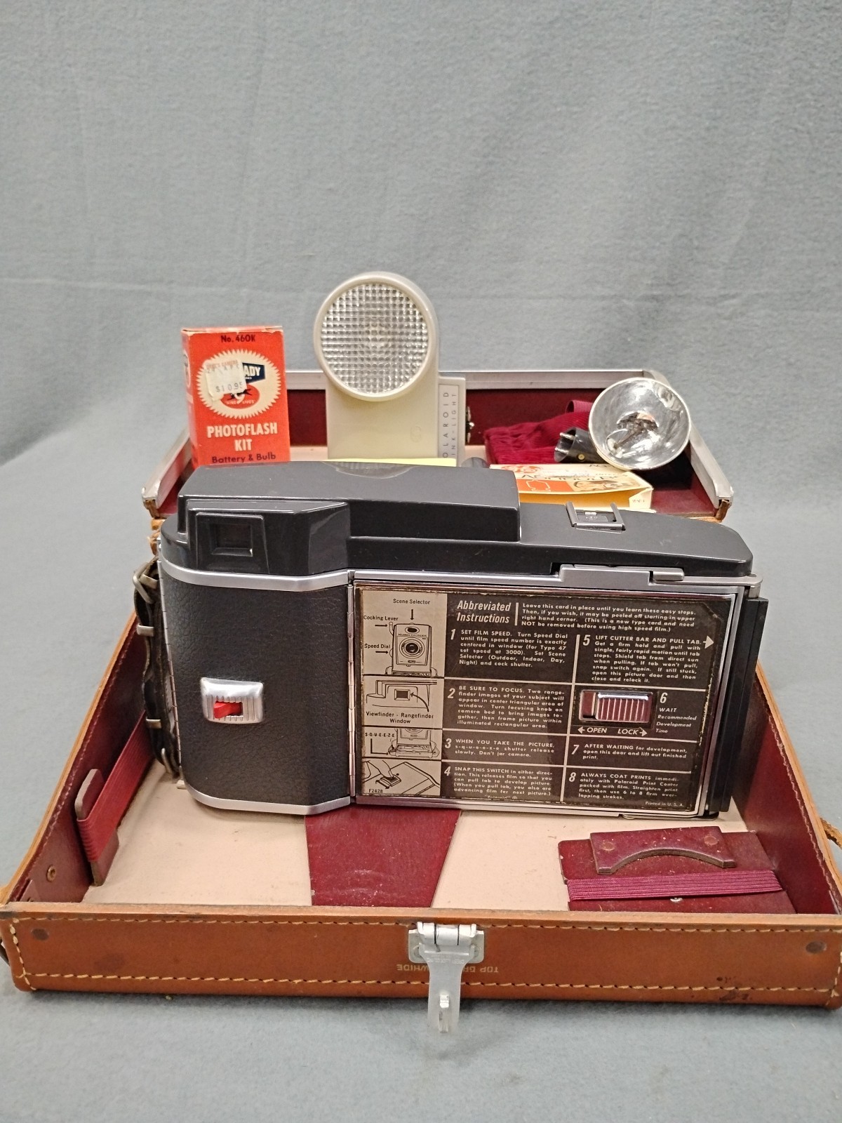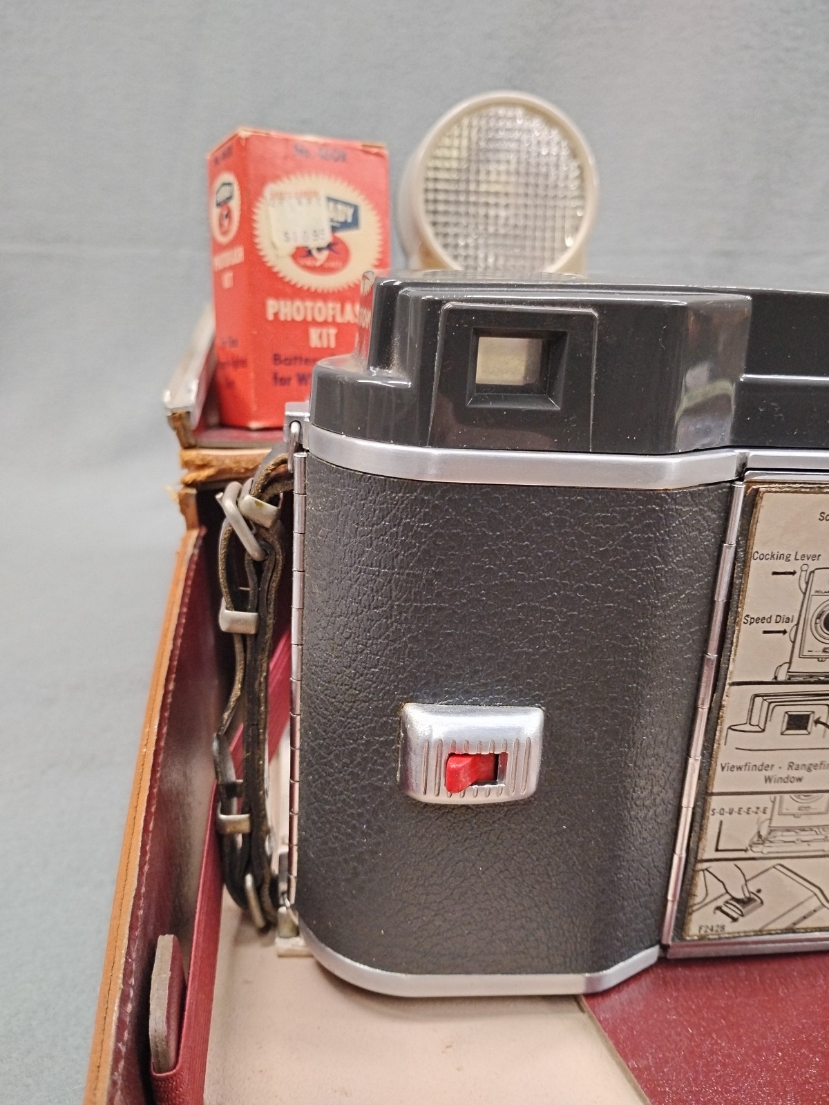 как выглядит Vintage Polaroid Electric Eye 900 Land Camera Model 110A W/Case accessories. фото