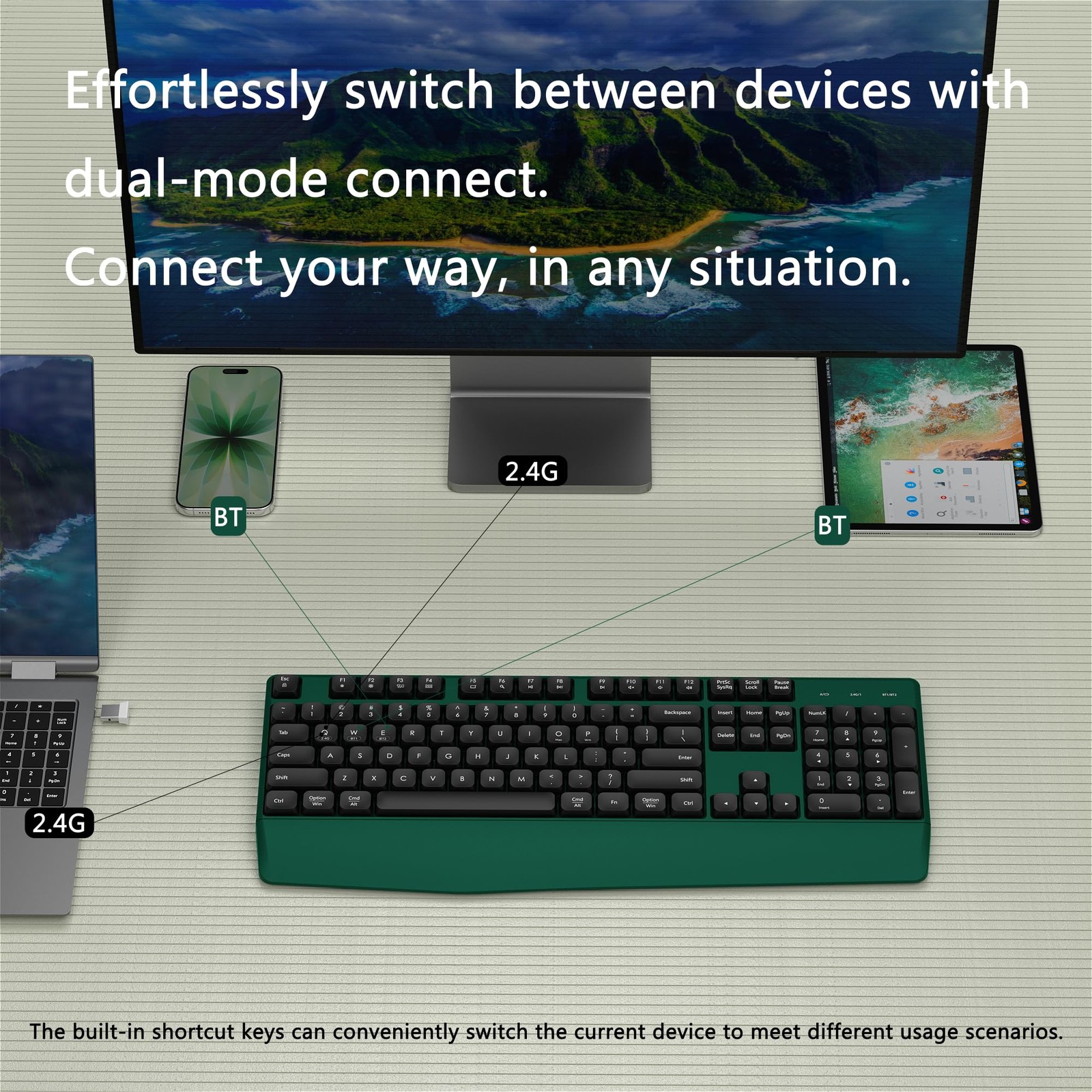 Wireless Bluetooth Keyboard, Ergonomic Wireless Keyboard with Wrist Rest, 2.4...