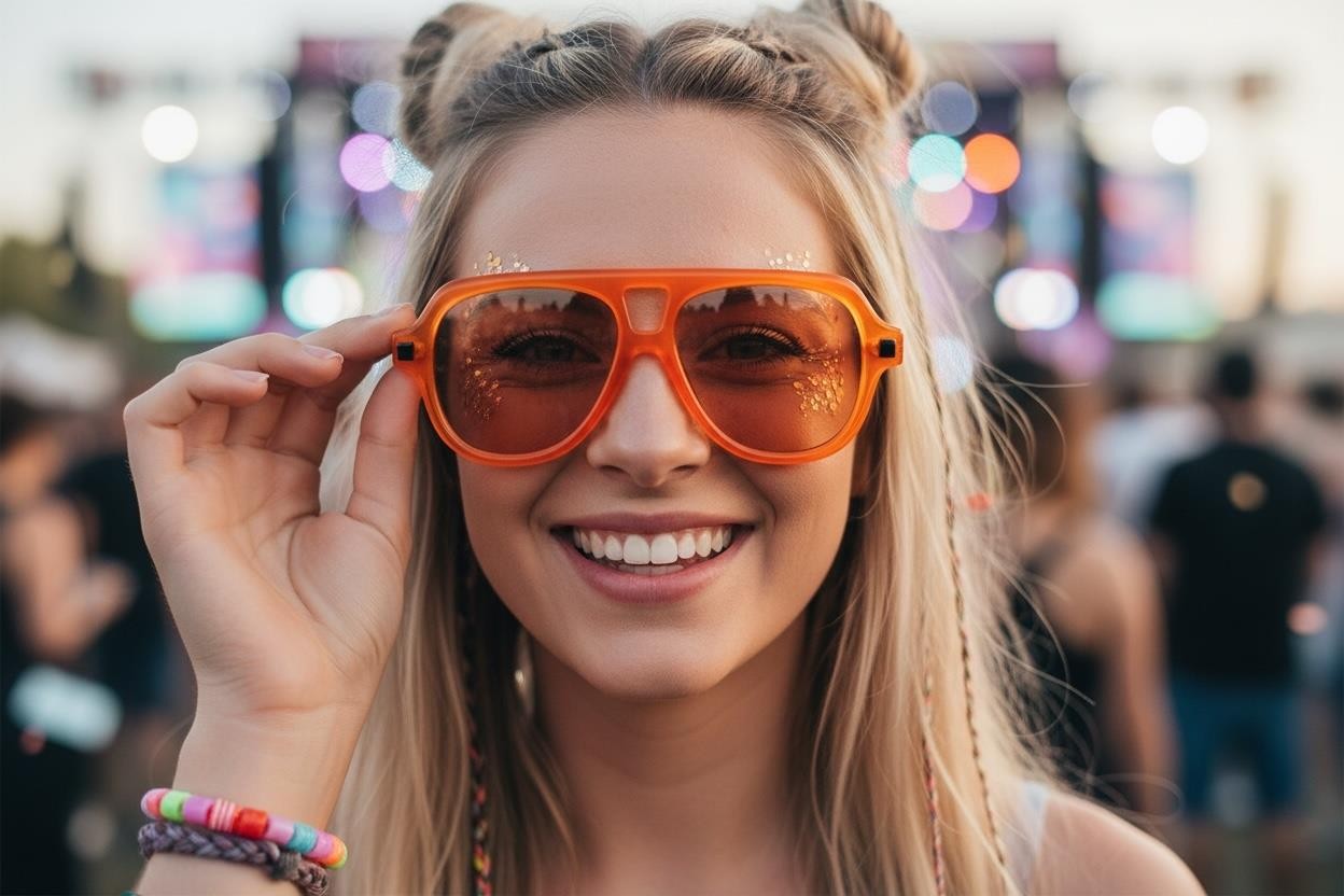 Men's or Women Classic Vintage Retro Party Raver SUNGLASSES Large Caramel Frame