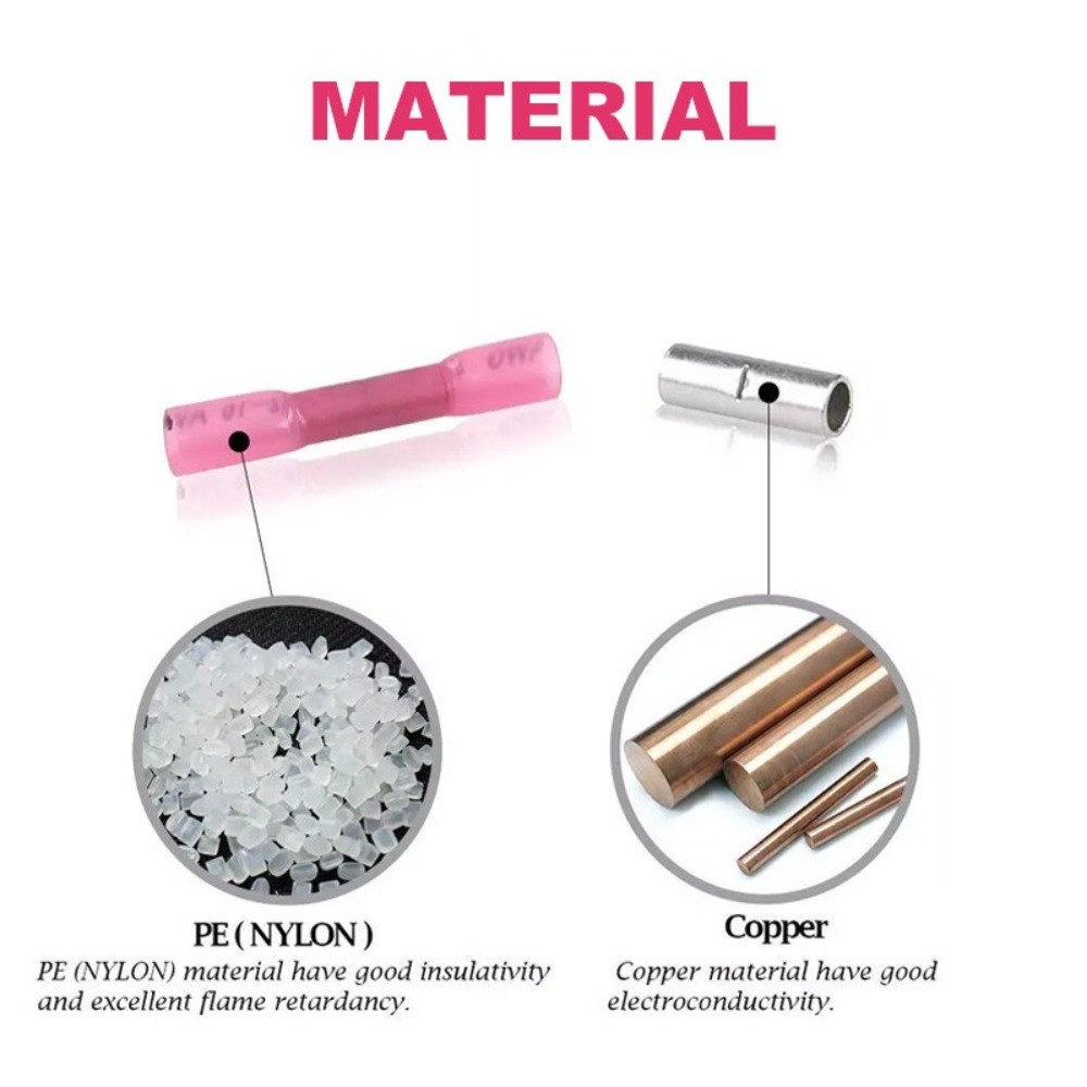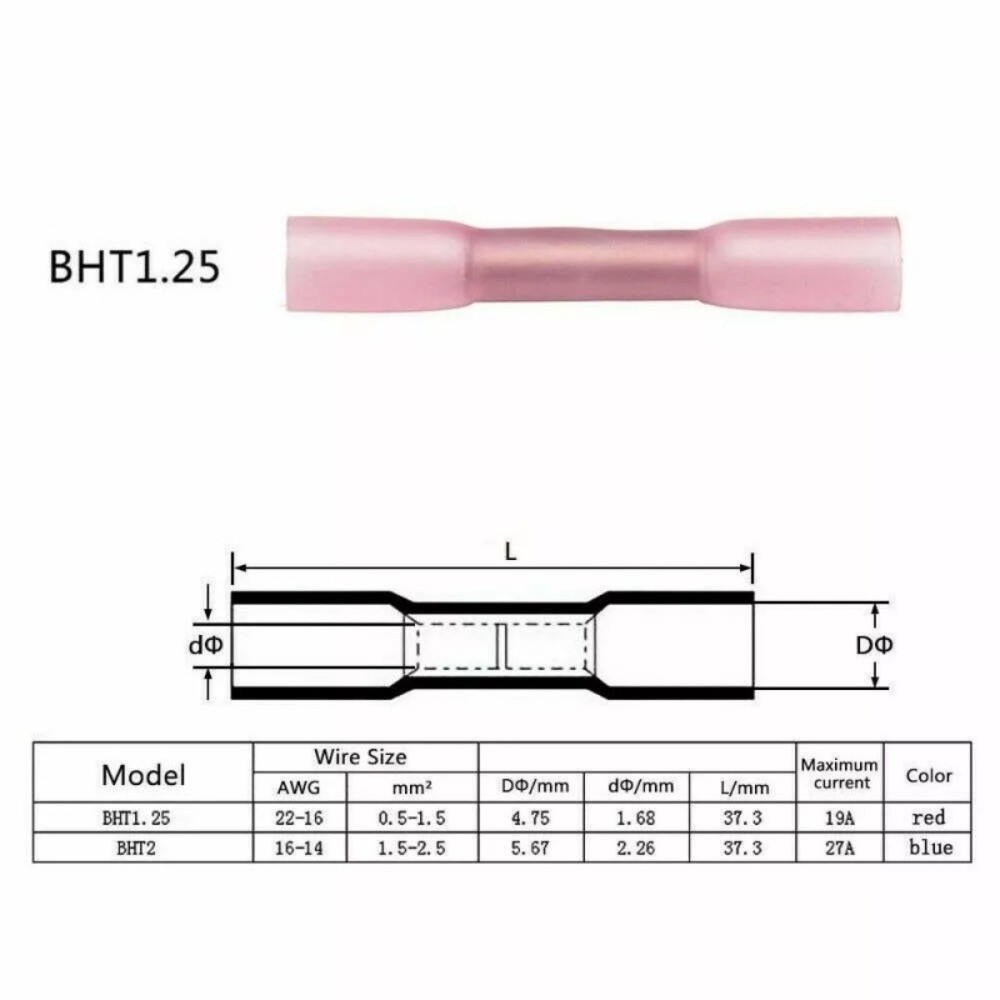 1000PCS Heat Shrink Waterproof Wire Connectors Red 22-16 AWG Butt Seal Terminals