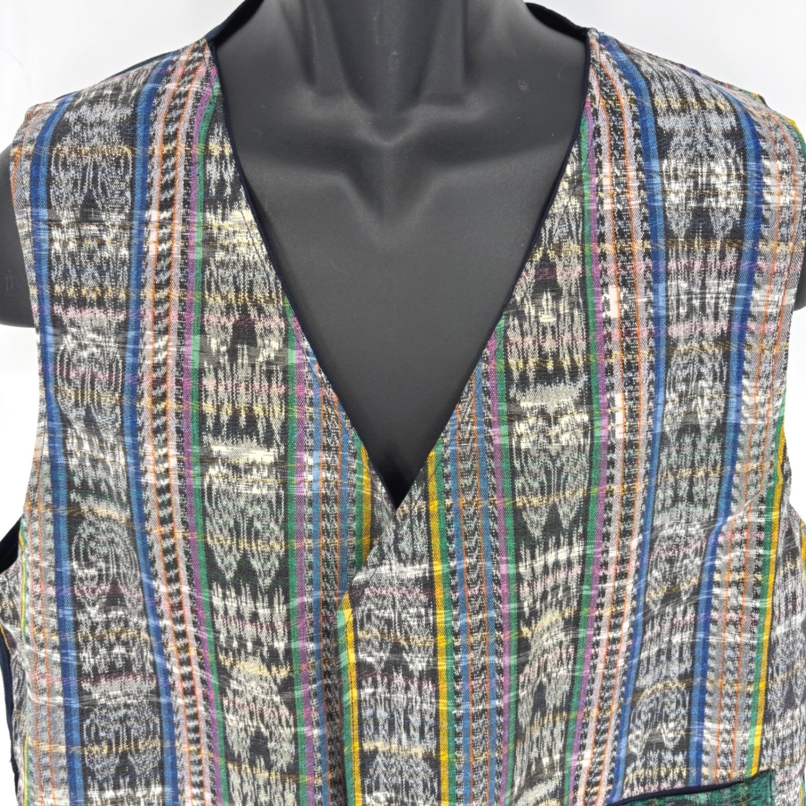 как выглядит Vintage 80s Guatemalan Open Front Vest Waistcoat Blue 100 Cotton Mens Sz M/L фото
