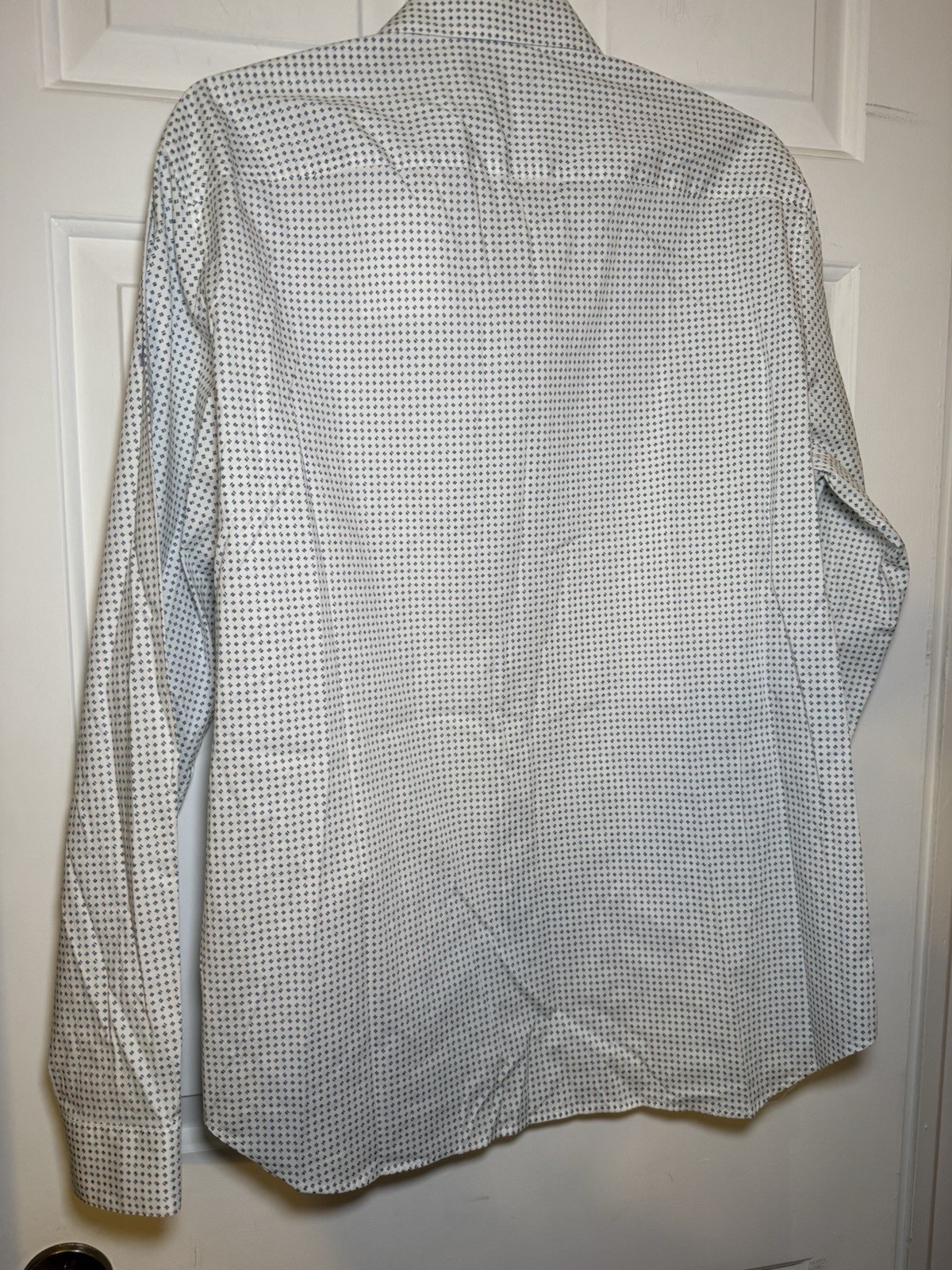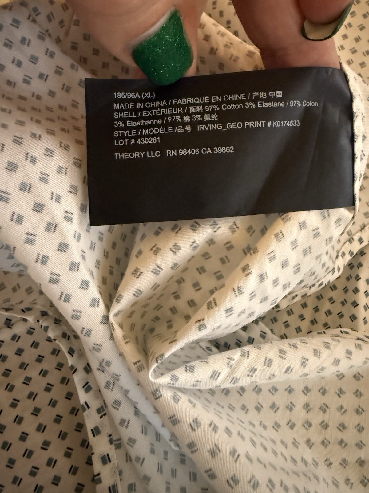 как выглядит Theory Men s Irving Geo Print Button Up Shirt XL NWT Point Collar Cotton 195 фото