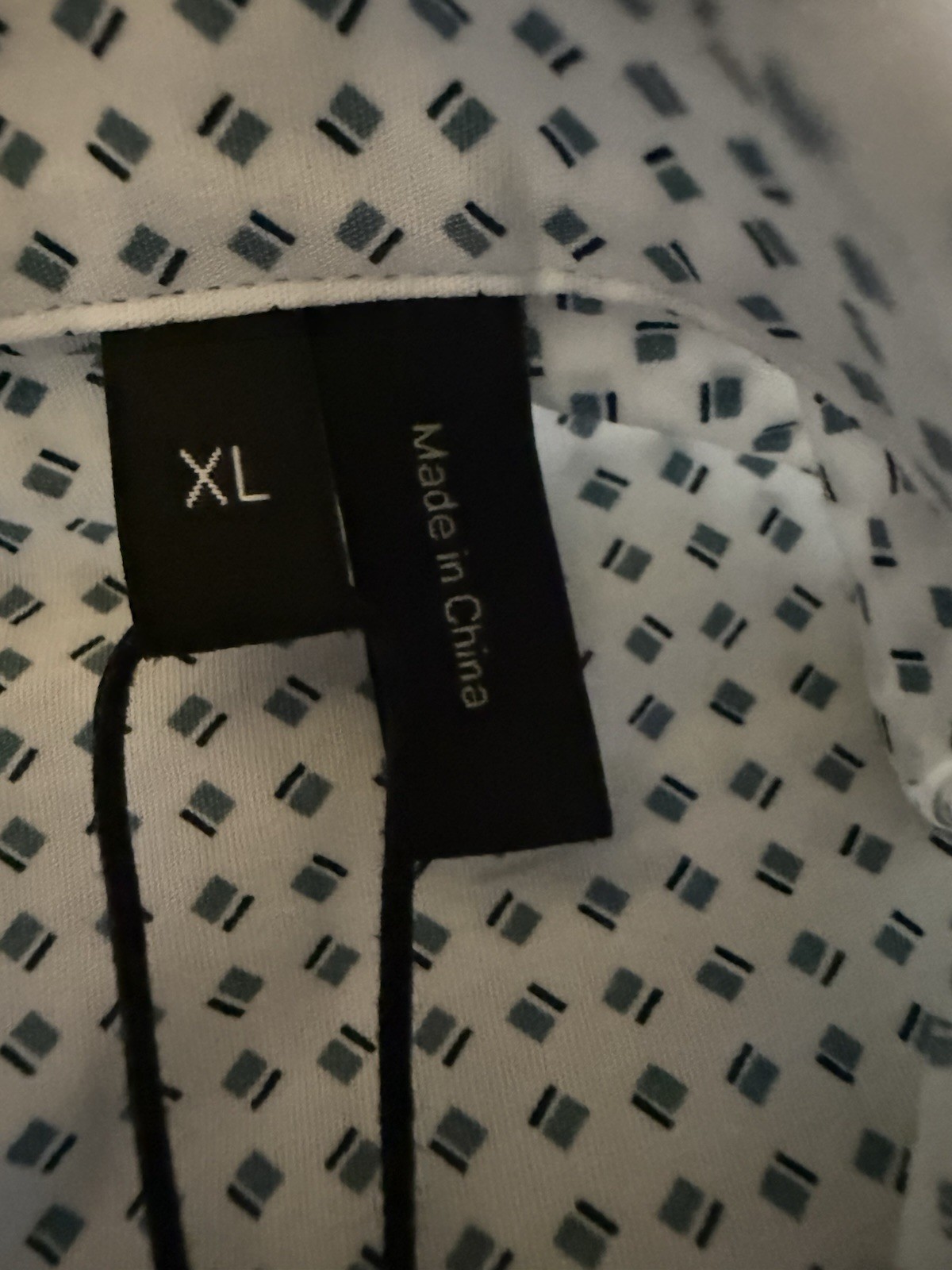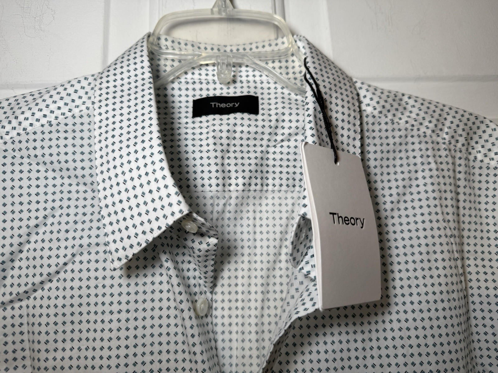 Theory Men s Irving Geo Print Button Up Shirt XL NWT Point Collar Cotton 195