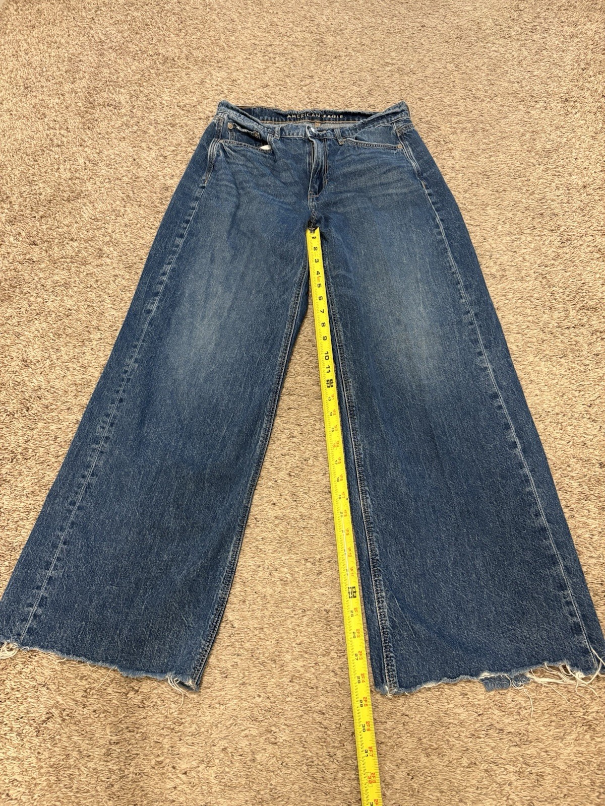 как выглядит American Eagle Jeans Super High Rise Baggy Wide Leg 8 Reg Distressed фото