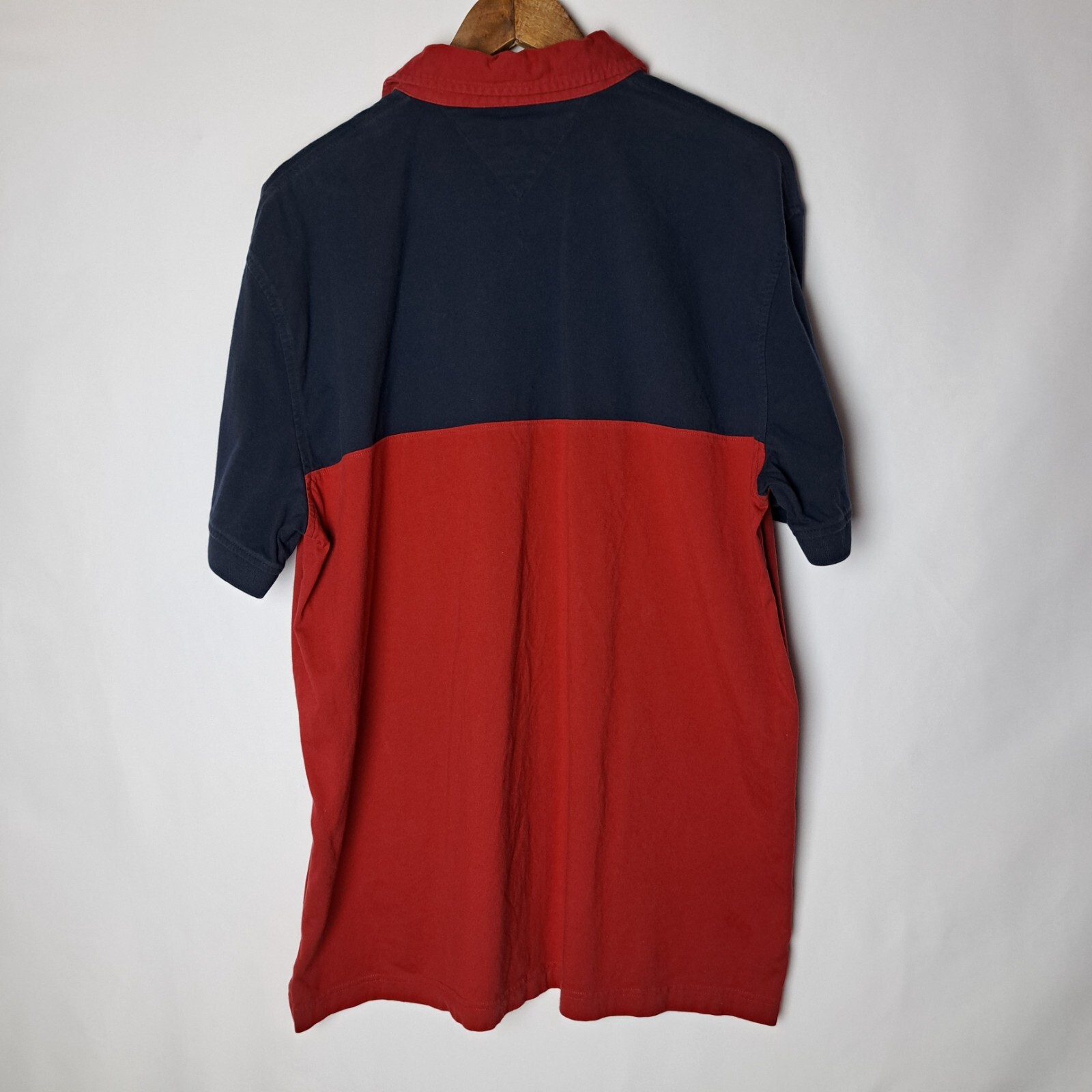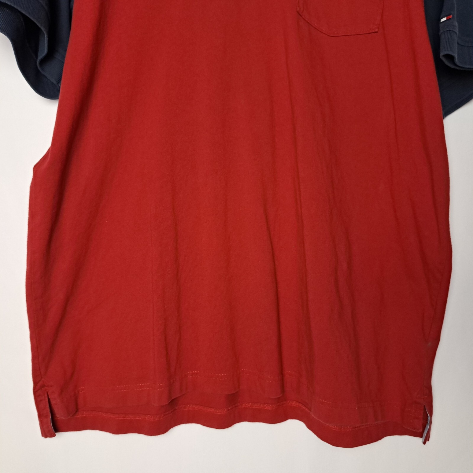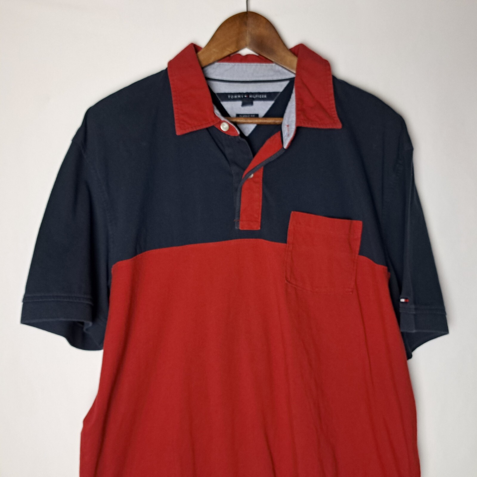 Tommy Hilfiger Polo Shirt Mens XL Red Blue Classic Fit Colorblock Short Sleeve