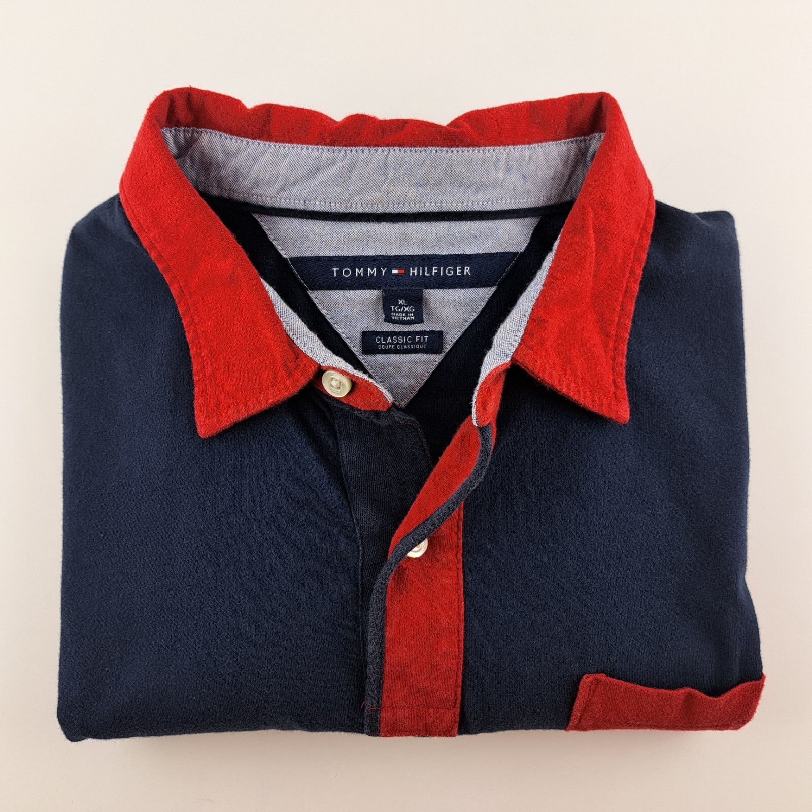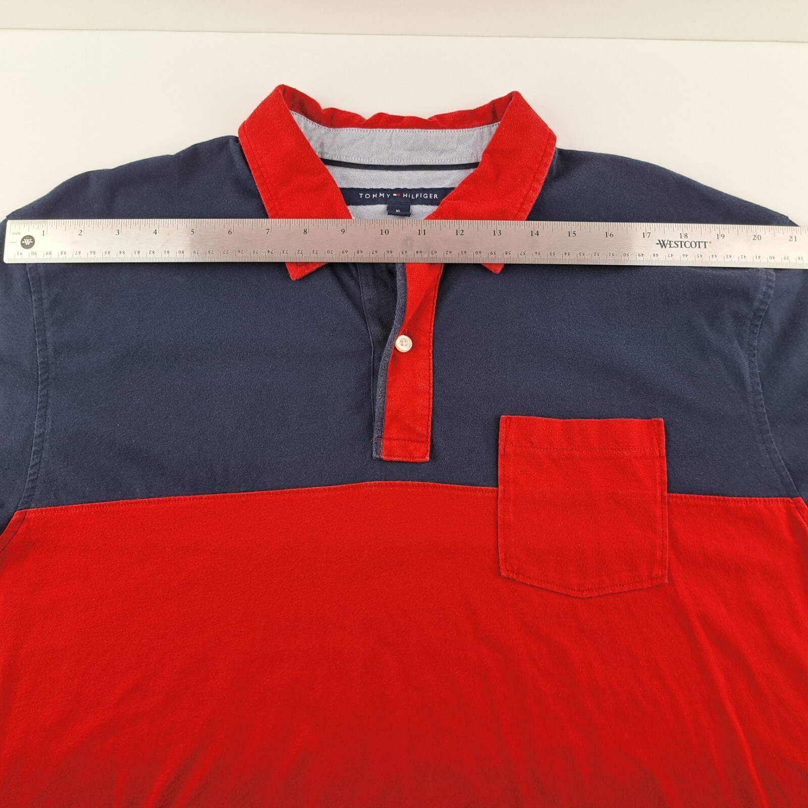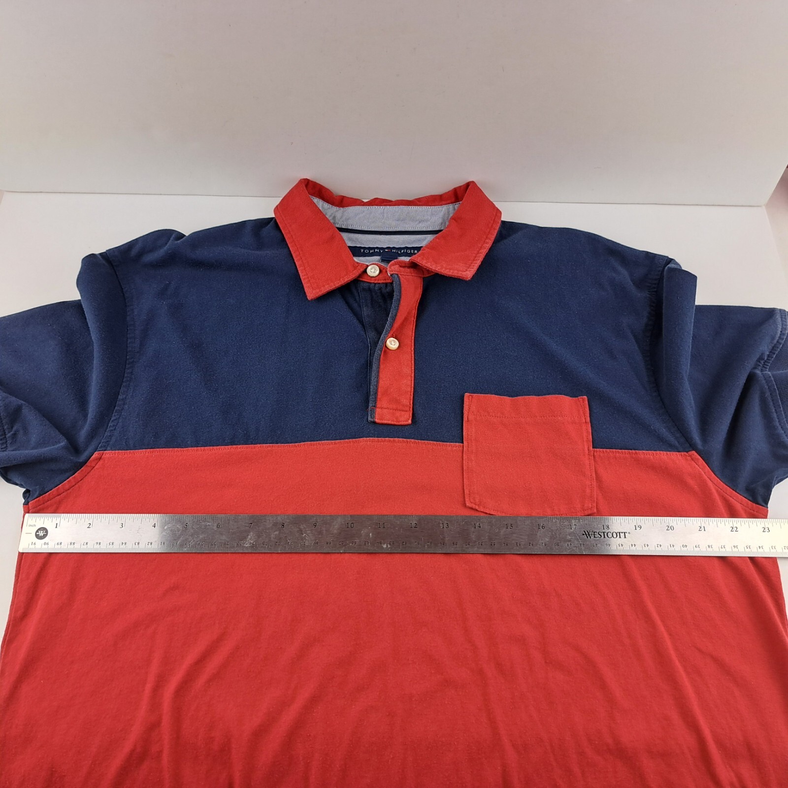 Tommy Hilfiger Polo Shirt Mens XL Red Blue Classic Fit Colorblock Short Sleeve