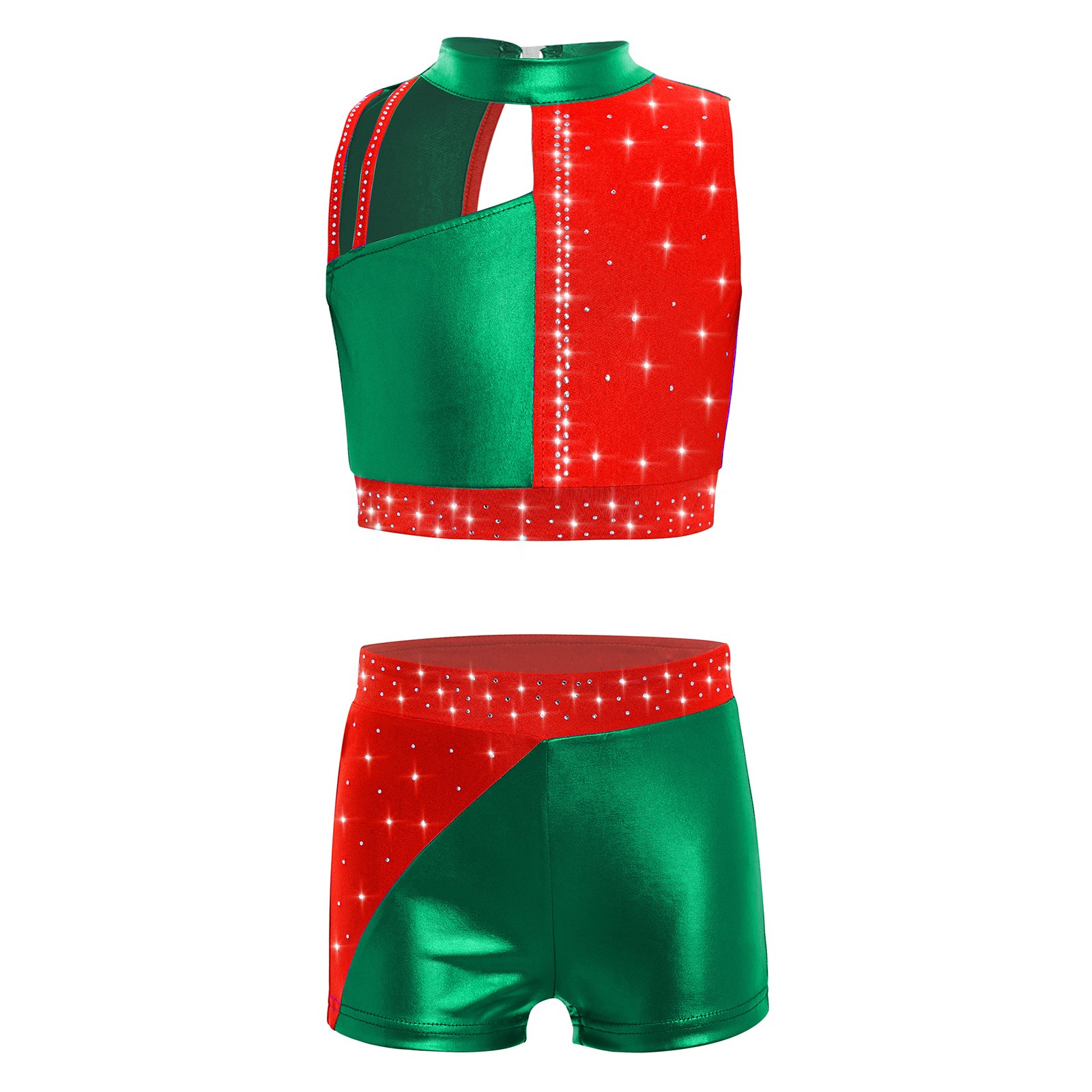 Girls Outfit Ballet Set Shiny Rhinestones Dancewear Sports Modern Dance Jazz
