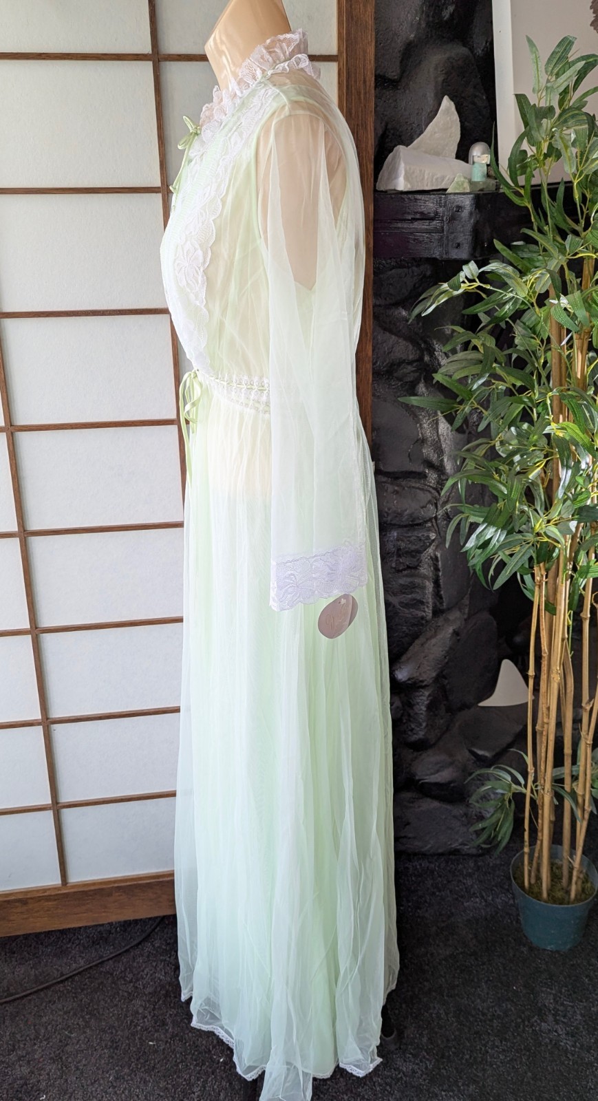 как выглядит Vtg 1970s Miss Elaine Peignoir Set Long Mint Green Chiffon Lace USA Large NOS фото