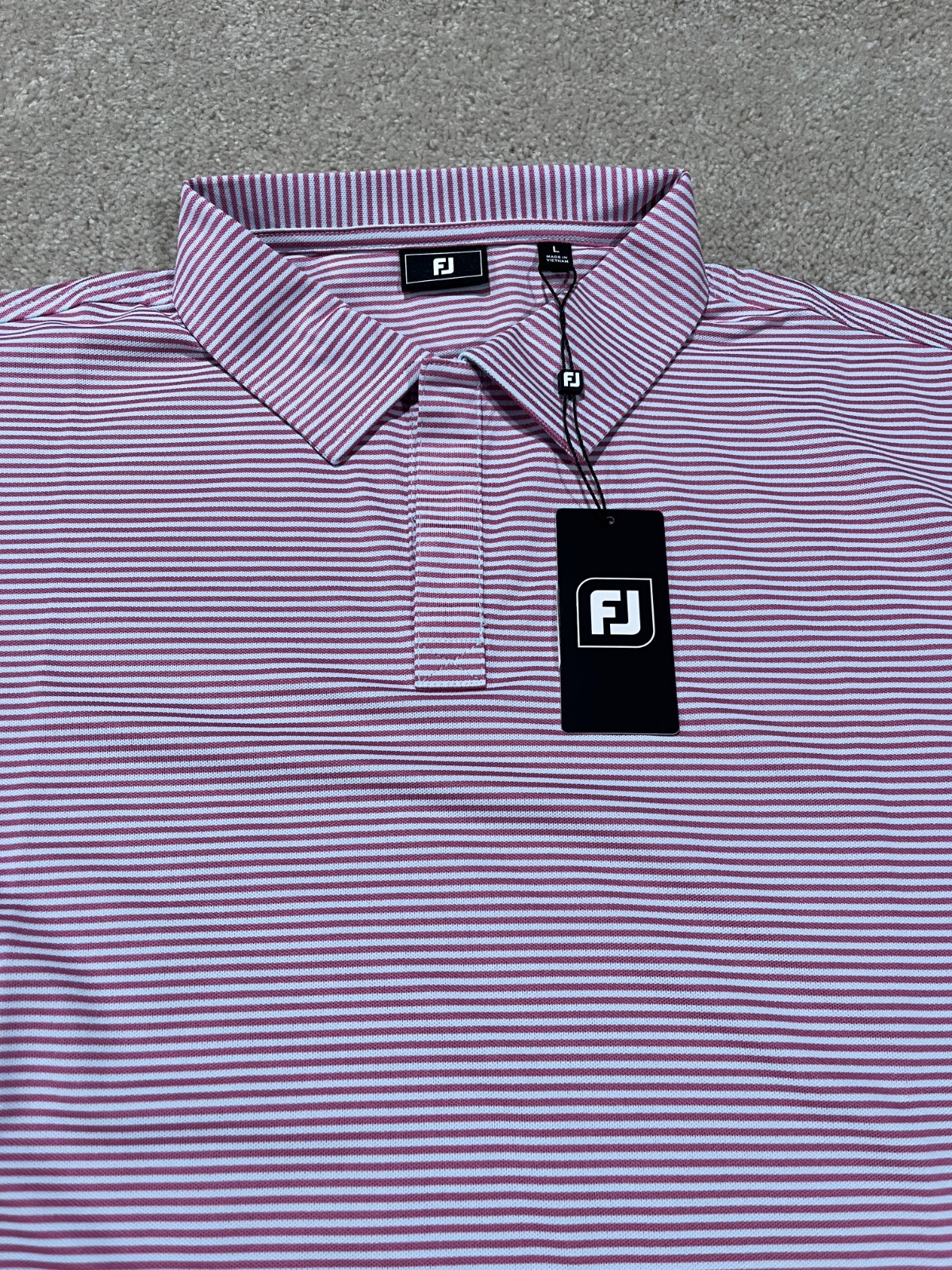 Footjoy Polo Shirt Mens Large Pink Striped Golf Performance Stretch Wicking