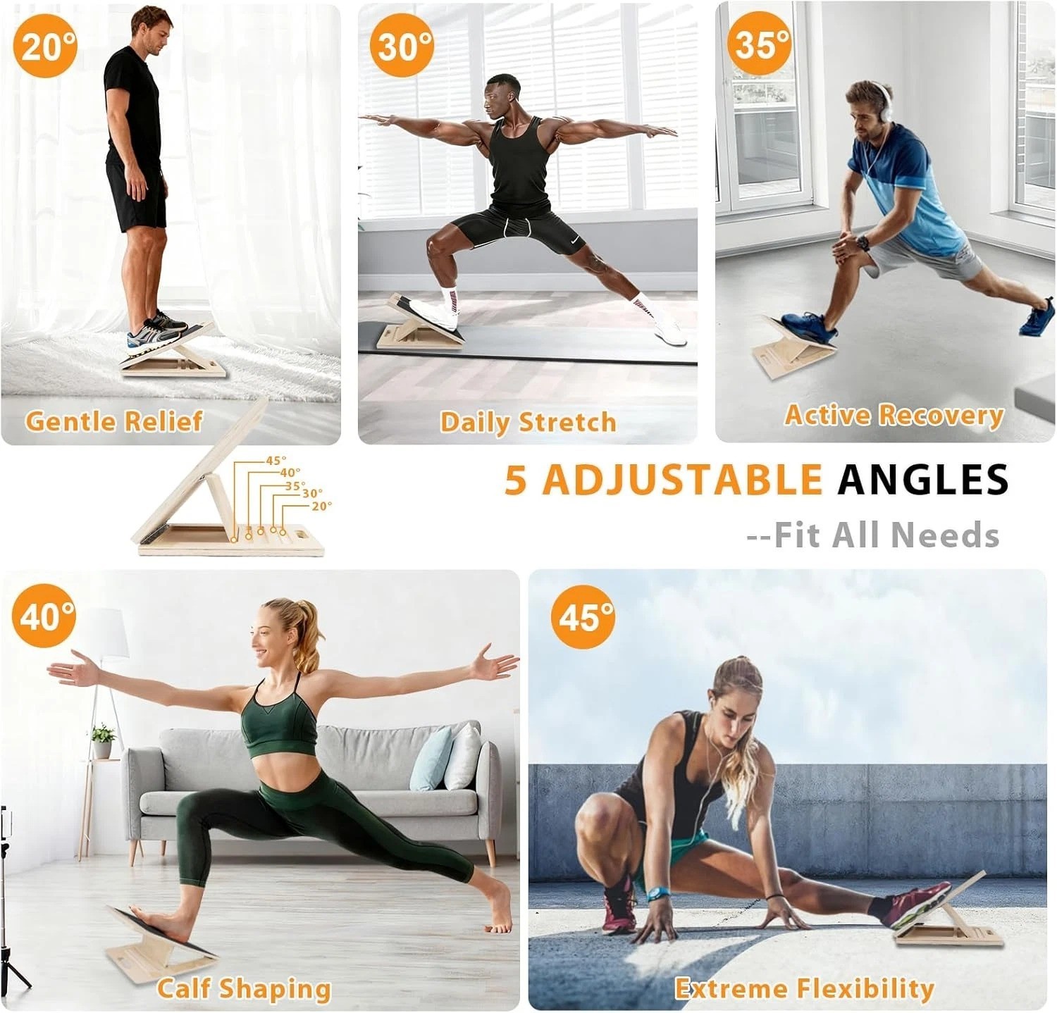 Adjustable Slant Board Calf Stretch Squat Wedge for Fitness, Rehab Leg Trainin