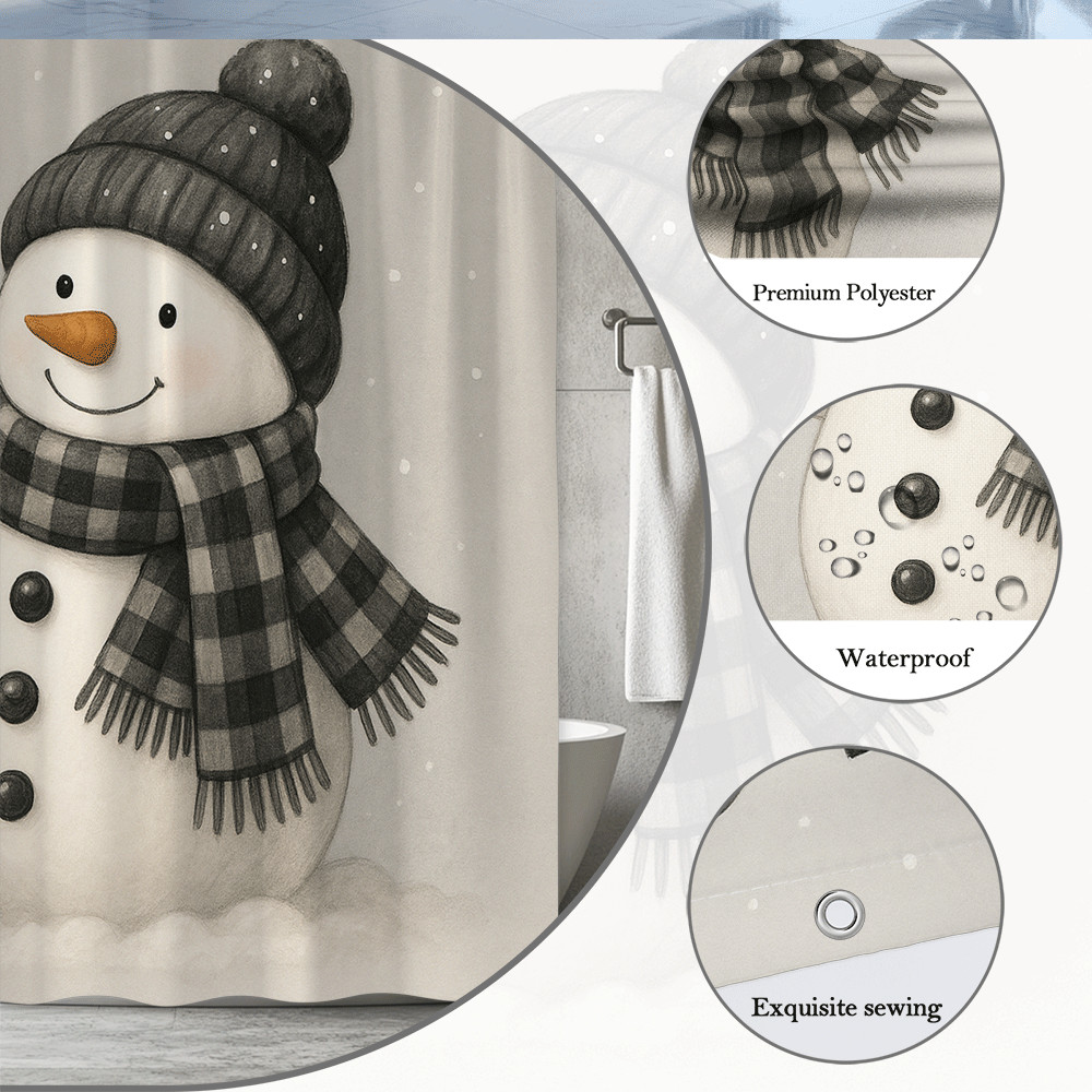 Cute Snowman Shower Curtain for Winter Decor, Snowy Scene
