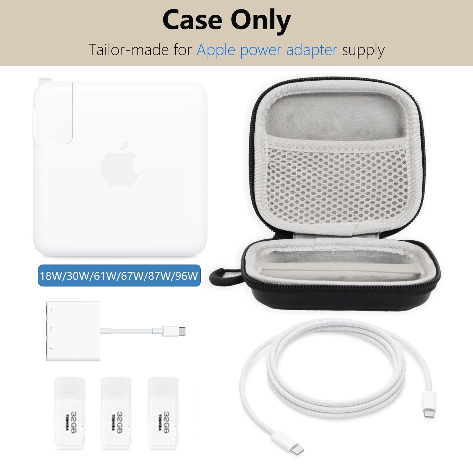 Linpr Charger Case for Macbook, Portable Tech Electronic Organizer M, Black