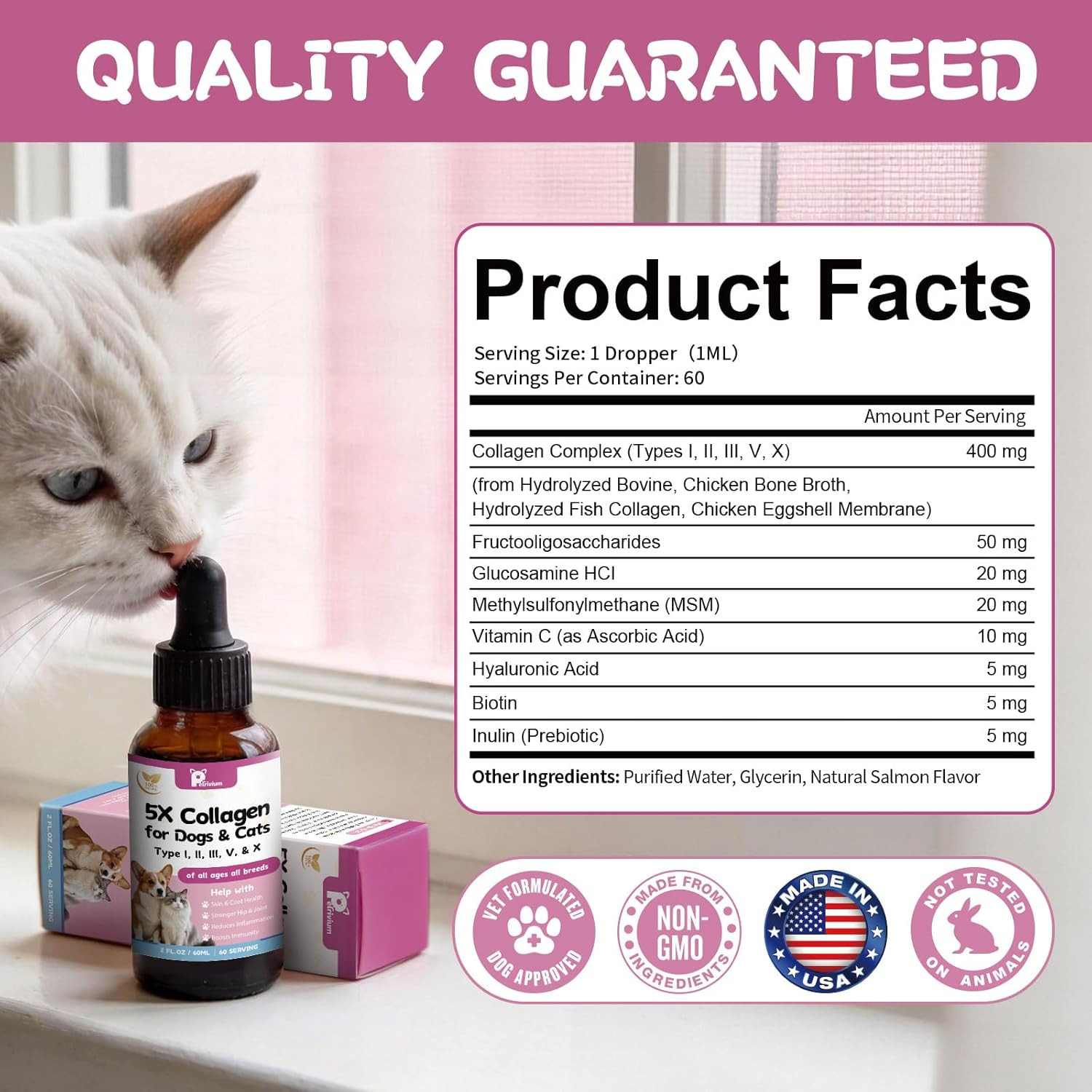 Collagen for Dogs, Liquid Collagen for Dogs and Cats - 5 Types of Grass-Fed Coll