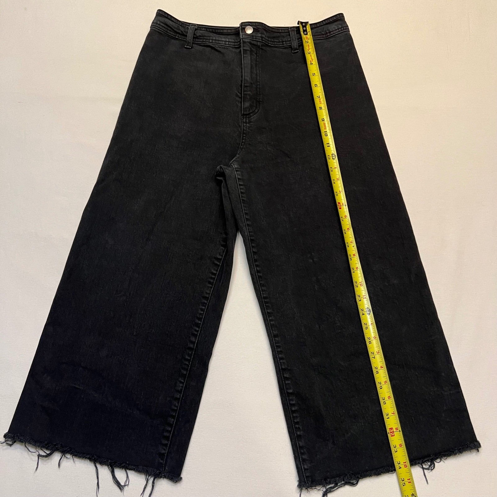 Universal Thread Wide Leg Cropped Ankle Jeans Washed Black Raw Hem Size 12