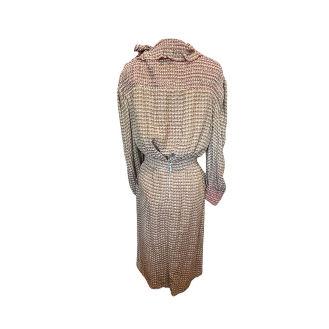 как выглядит 1970s Textured Knit Top Skirt Set Rust Tan Gray Cowl Neck Boho Vintage Outfit фото