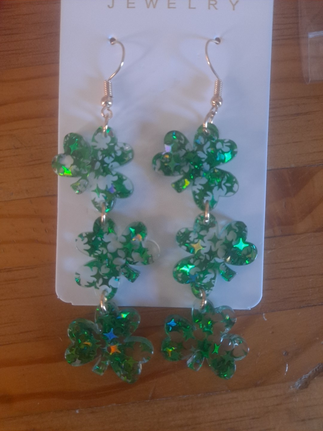 как выглядит St Patricks Day Dangling Green Clover Glitter Resin Post Earrings фото